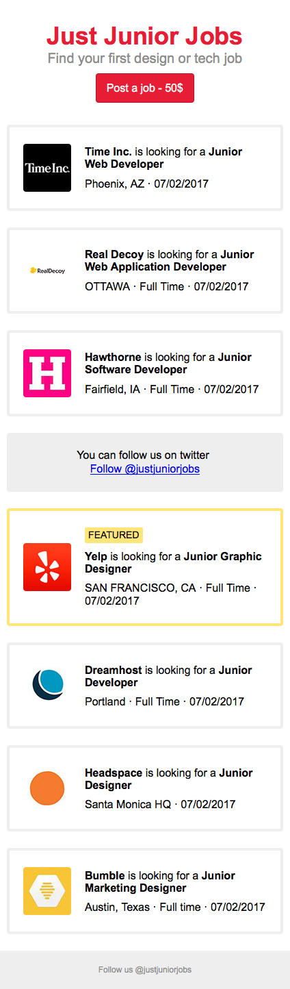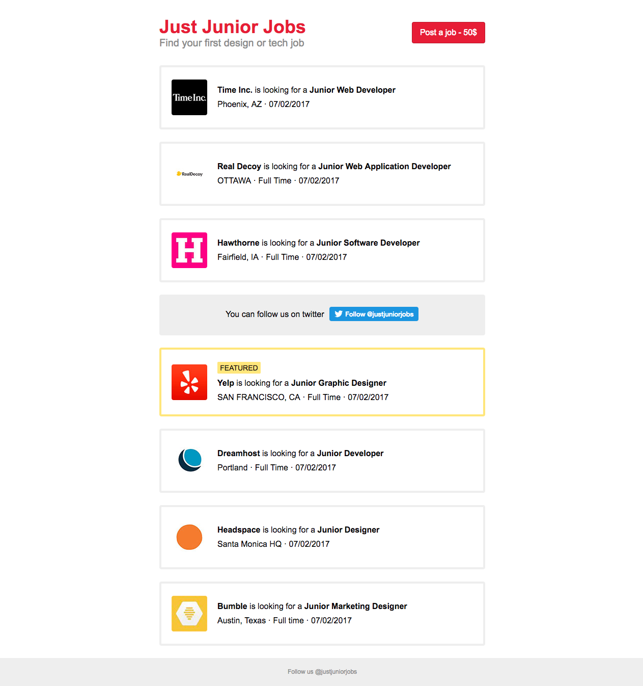 Cool simple site ... just a question, to do with the ole chicken and the egg problem. Since you have such low traffic, how are you able to charge 50 dollars a posting? Is it targeted marketing to a email base or something?