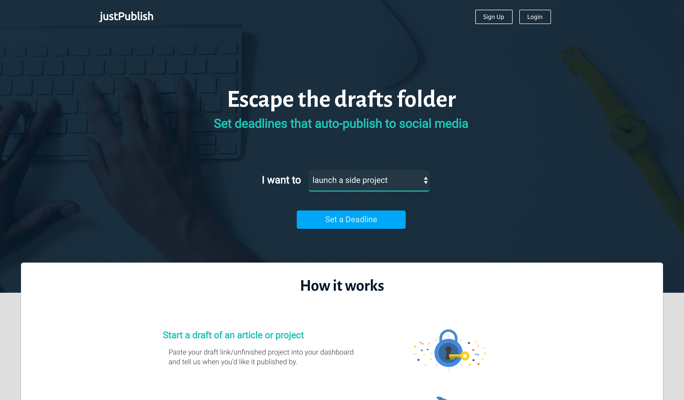 I built justPublish to solve my own problem: I have way too many draft blog posts sitting in Medium and Wordpress. My excuses for not publishing ranged from writer's block to procrastination. But then on a podcast, Malcolm Gladwell answered the question “how have you been able to write so much?” by explaining how he spent years … See more