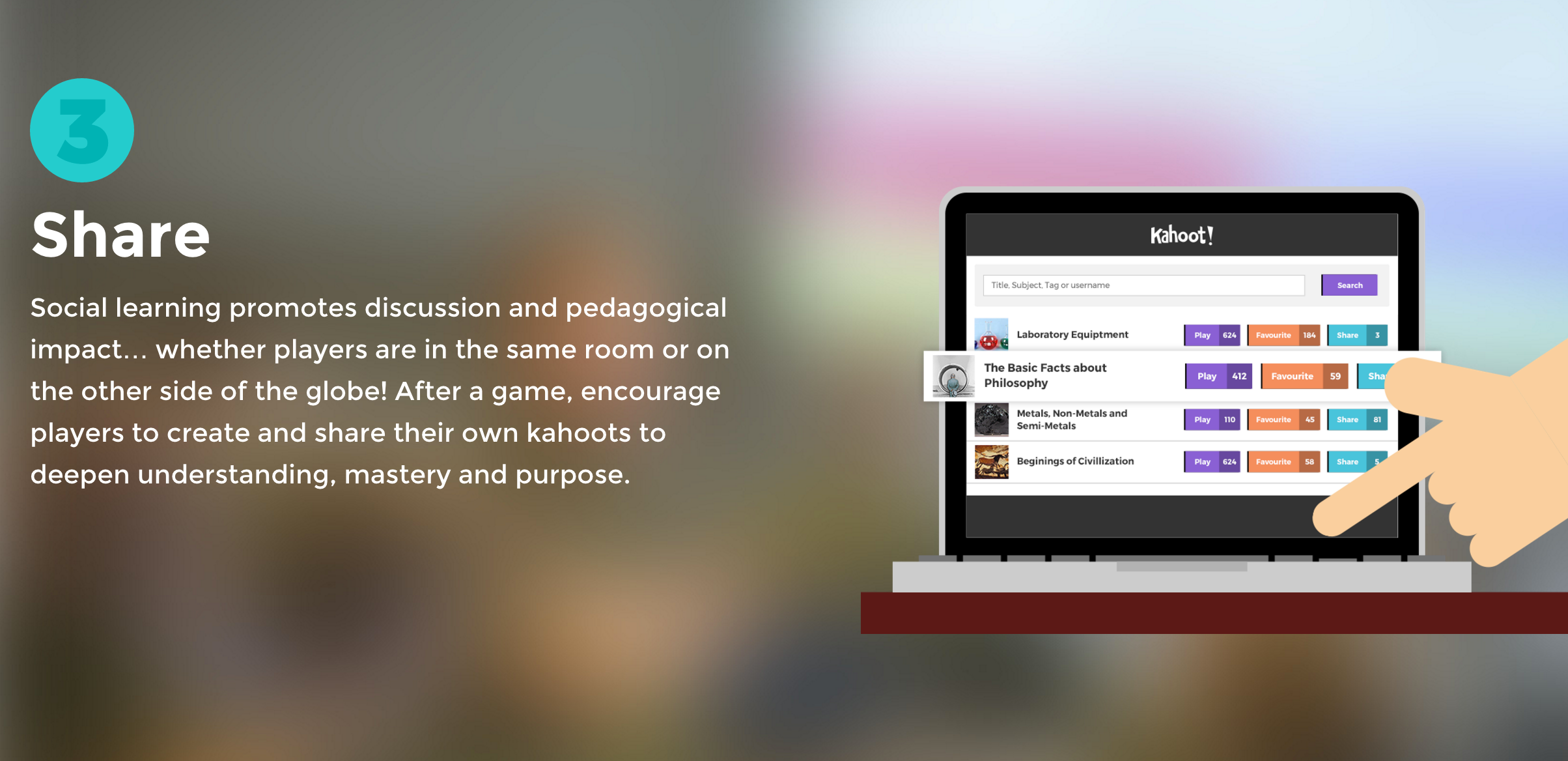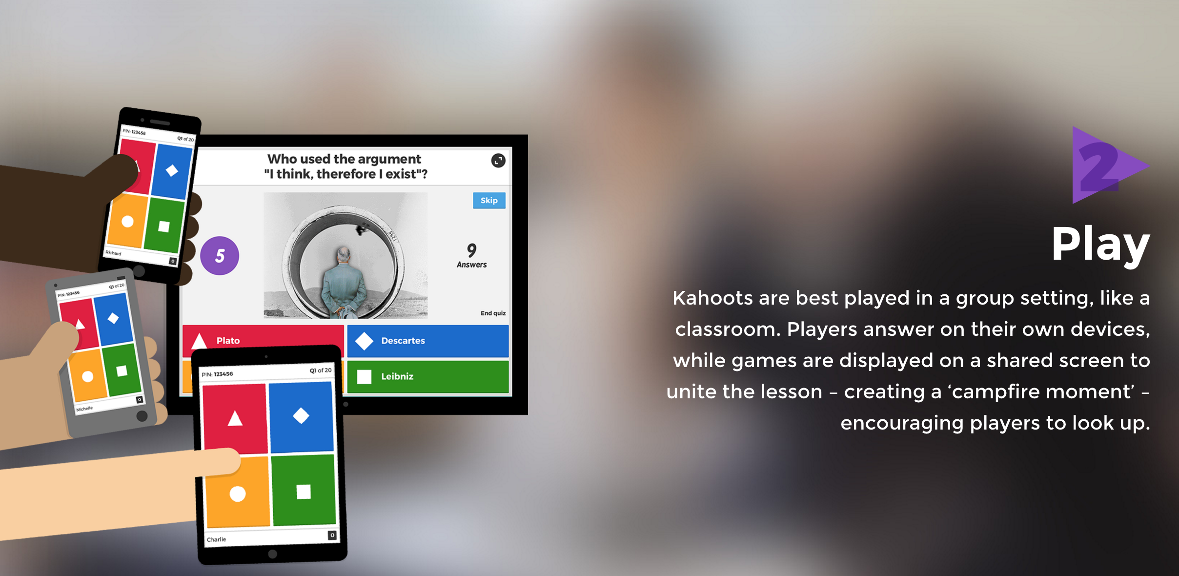 This product is a platform that enables you to setup quizzes. You can then share quizzes with your peers who play in real-time. The aim is to stimulate learning while having fun.