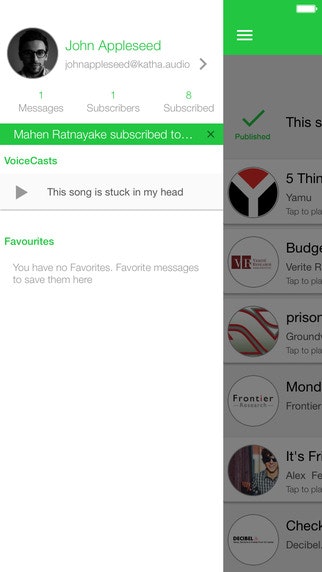 Katha lets you record short Podcasts of up to 5 minutes which you can post up for your whole subscriber base t… See more