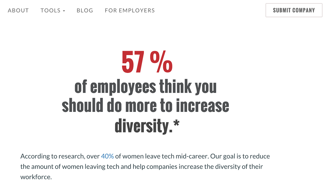 Over 40% of women leave tech mid-career. Our goal is to reduce the amount of women leaving tech and help companies increase the diversity of their workforce.