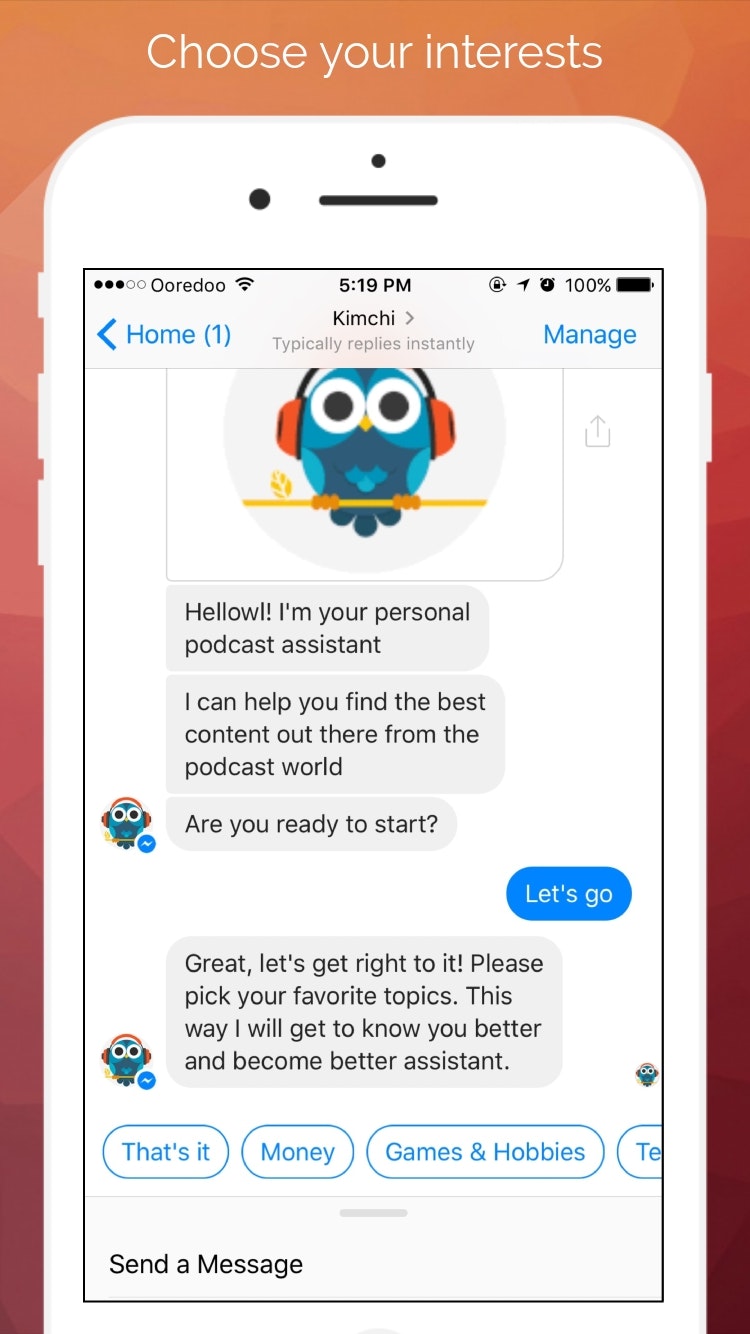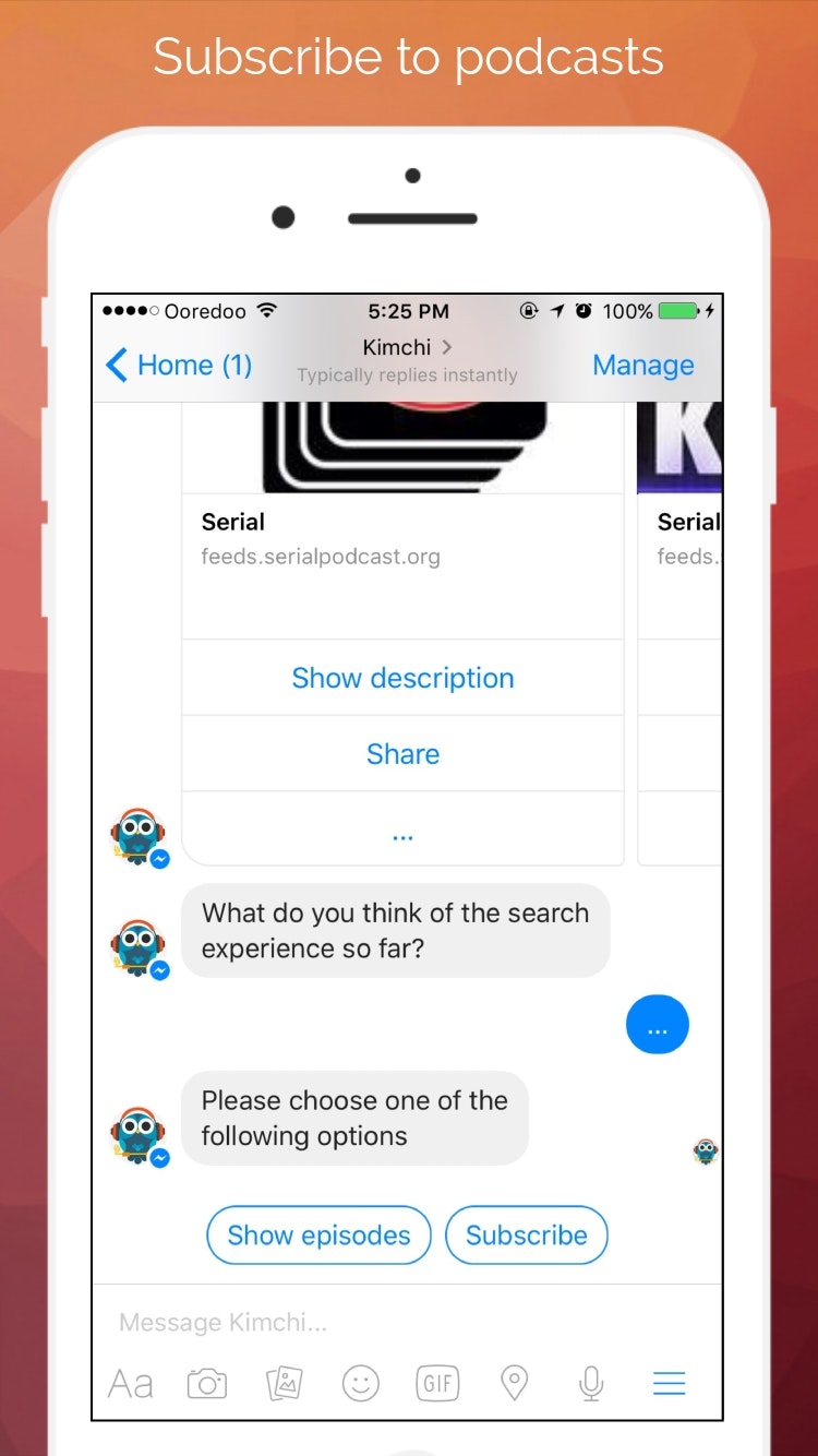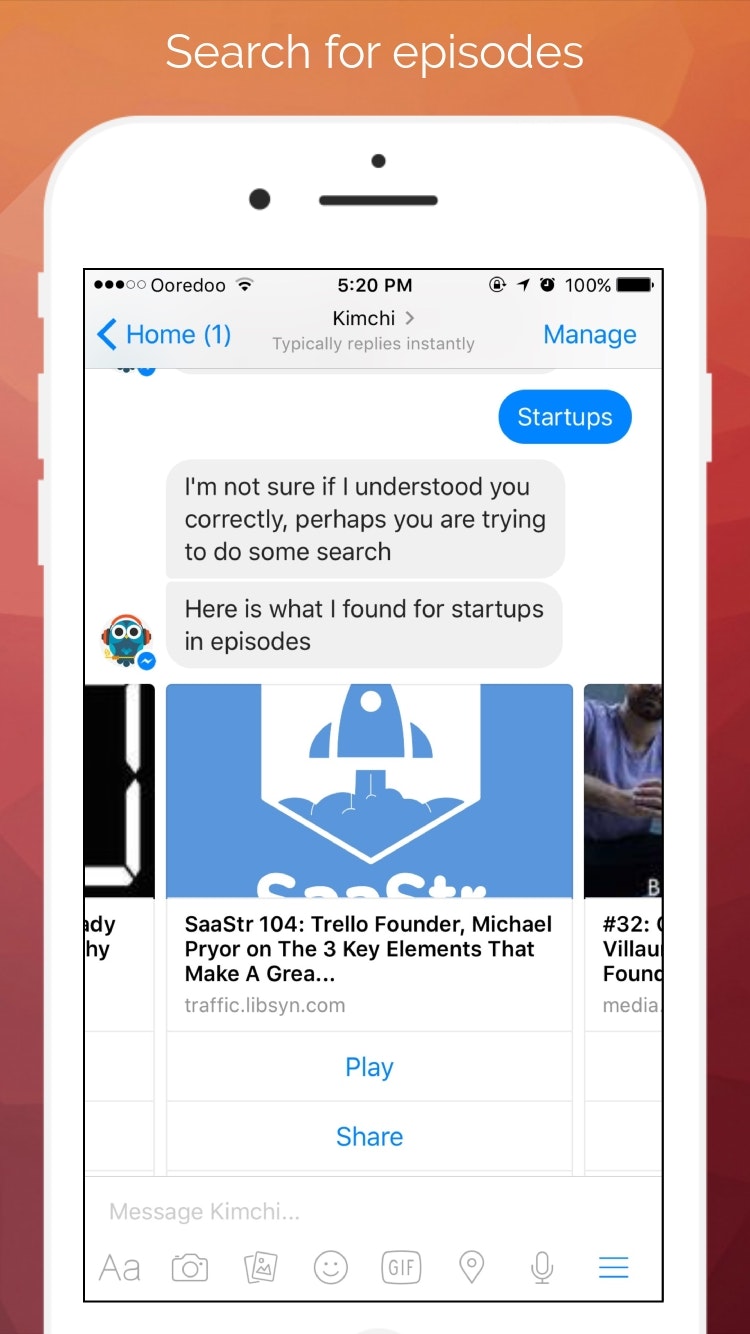 Today we're launching Kimchi, a Messenger bot that helps you discover and listen to podcasts.