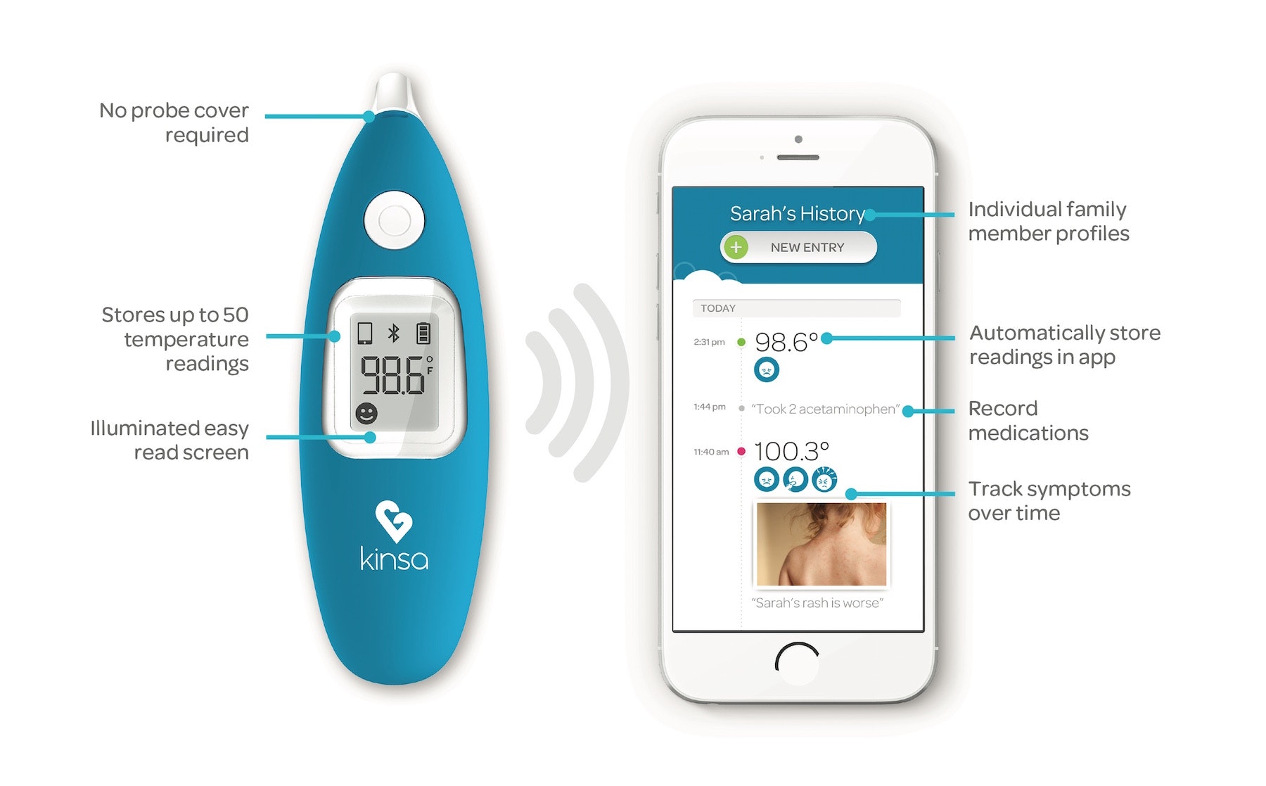 Hi guys, I'm the founder and CEO of Kinsa and happy to answer any questions you have! I am SO excited about this product we launched TODAY. It's a beautifully designed, instant, wireless ear thermometer that records illness details, offering the same great features as our existing products, but has new benefits we've been working on for the past year. For e… See more