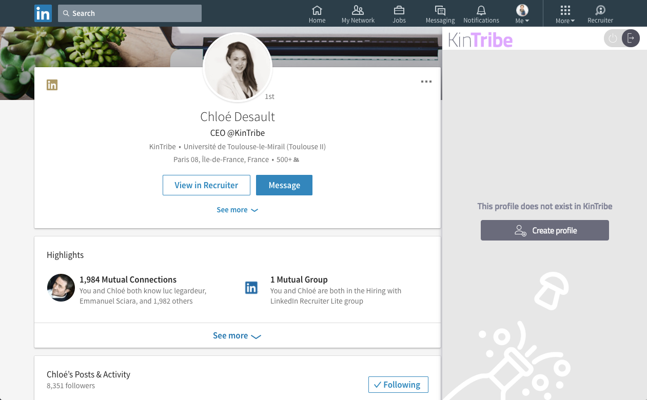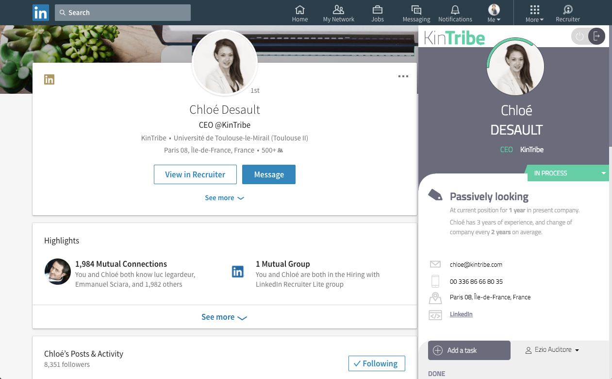 I'm one of the makers of KinTribe, the recruiter personal assistant.