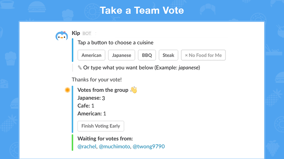 3. Leave no one member behind — Kip collects team preferences for restaurants choices