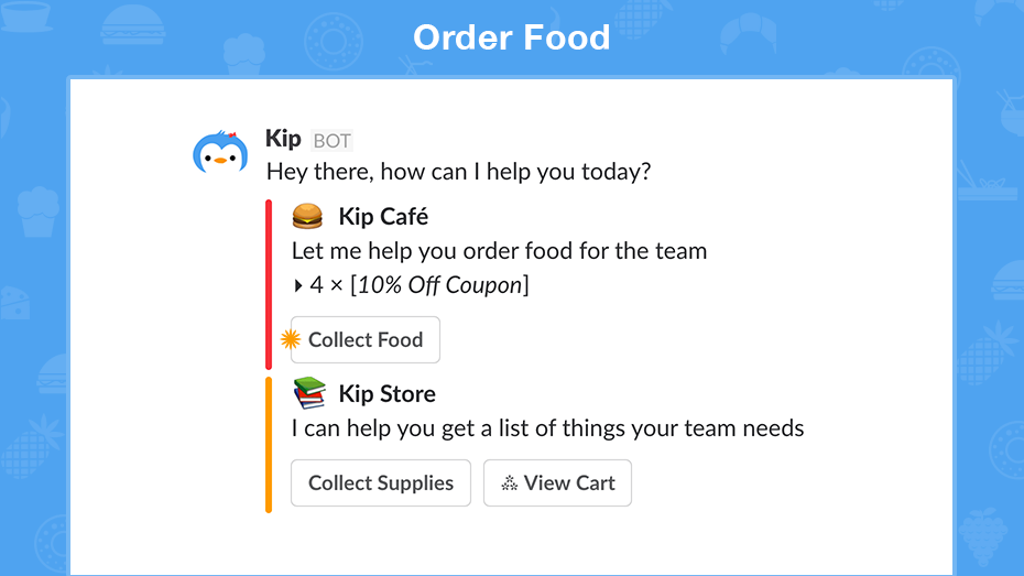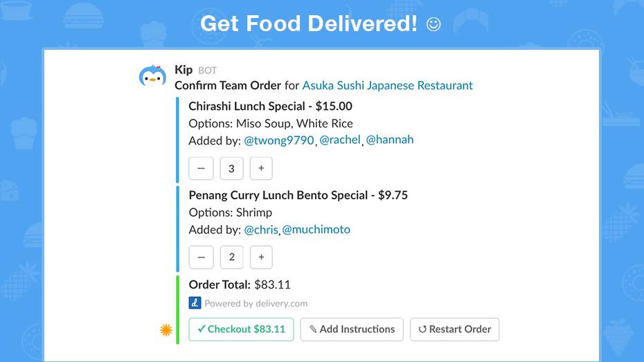 1. Order lunch and checkout directly in Slack without leaving chat