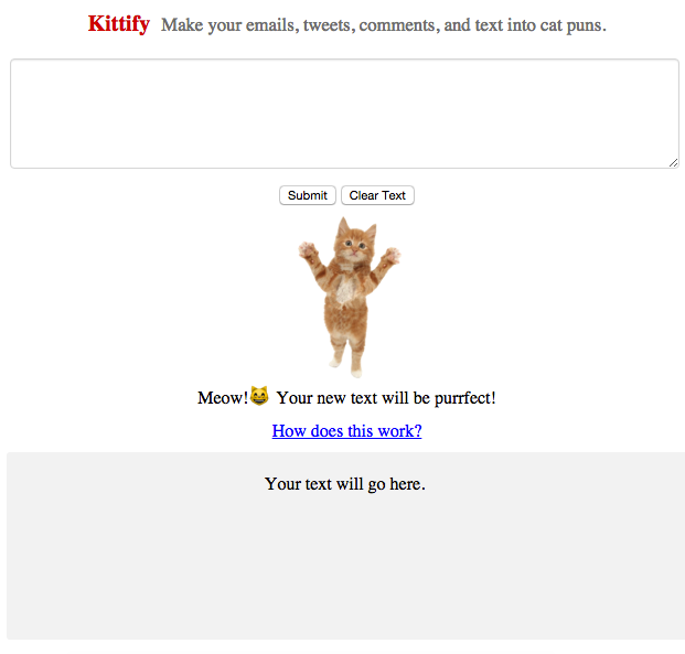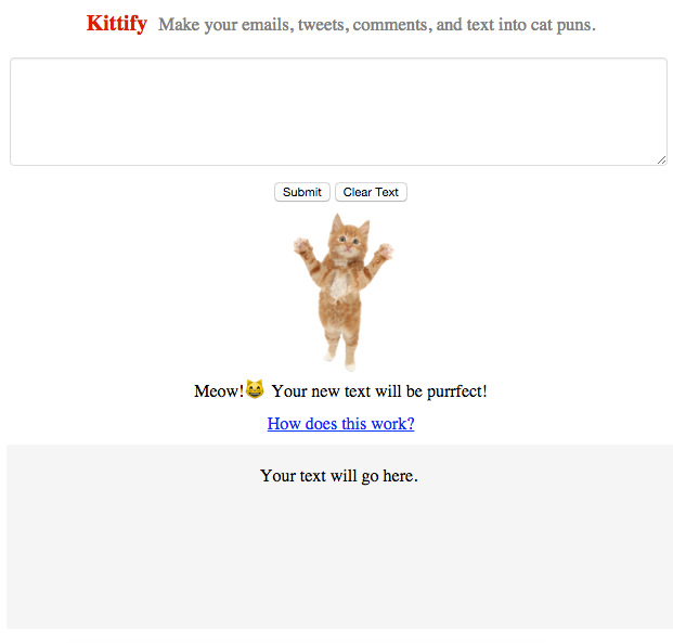 I was testing the product on @rrhoover article about being rejected from Monkey Inferno. Here is @ShaanVP email Kittified which I found really funny:
