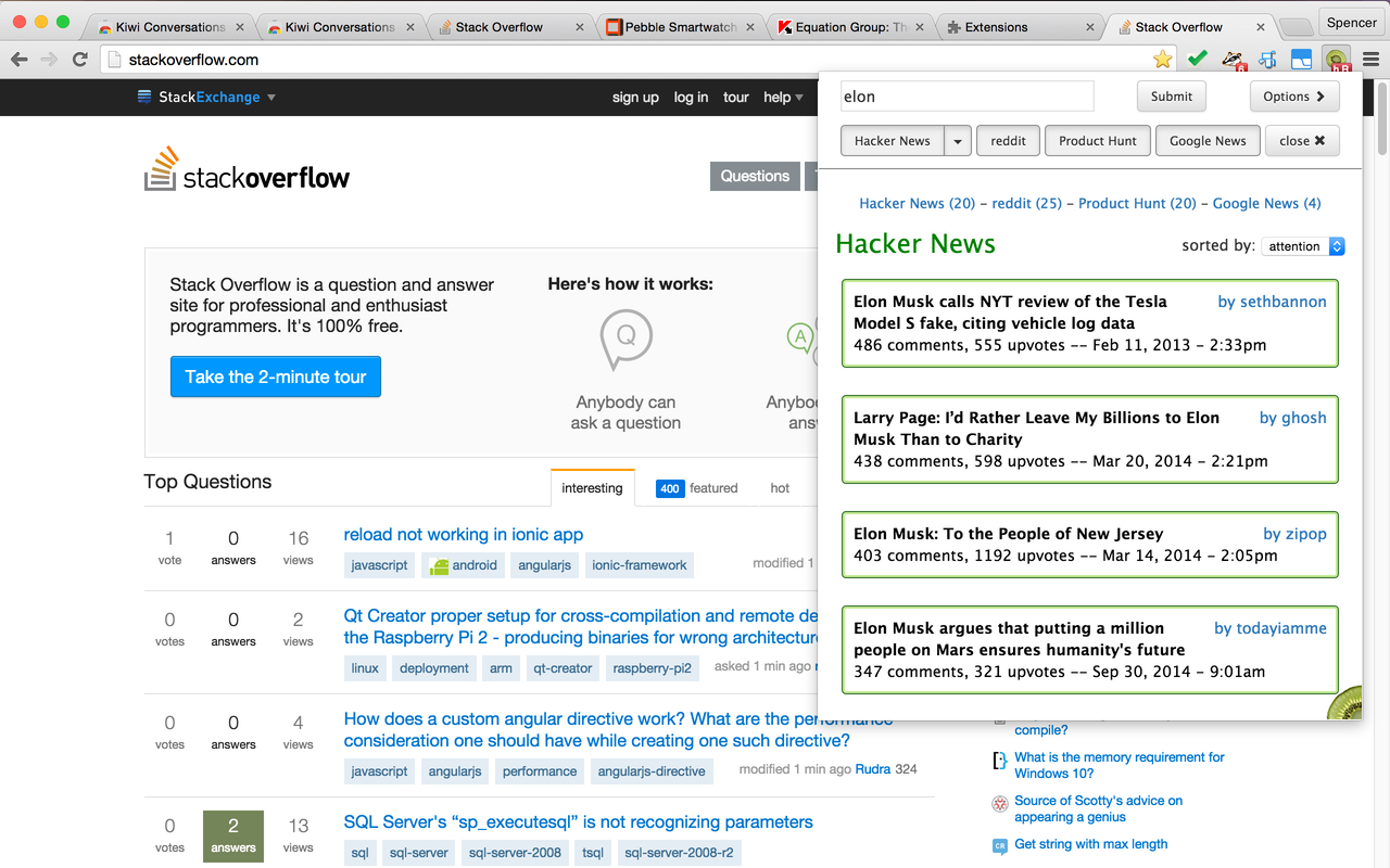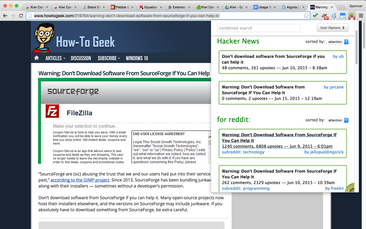 I kept wanting to know what HN threads existed about the URLs I was visiting while researching for a project a few months ago. After I found Algolia's HN REST API and saw the (extremely) generous rate-limiting terms, everything looked doable, so I started working on an extension that automatically checked. I also added the ability to do custom searches for a… See more