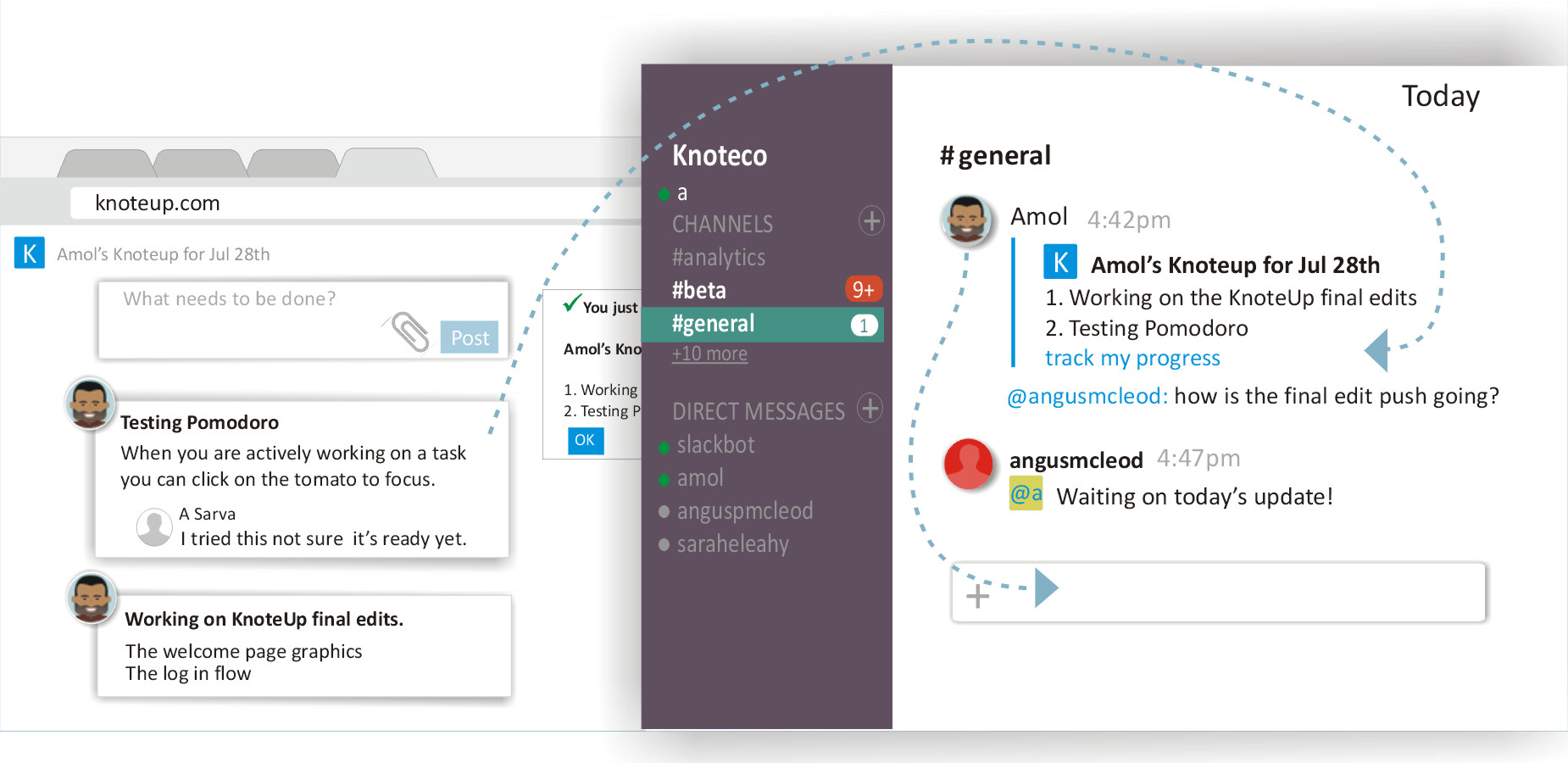 A daily task dashboard. Show the team what you're working on, stay focused task by task, and let folks discuss/ask/answer with less noise in the Slackstream.