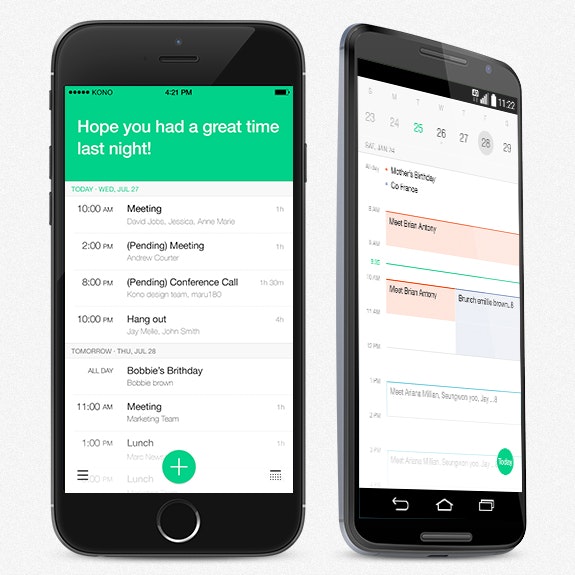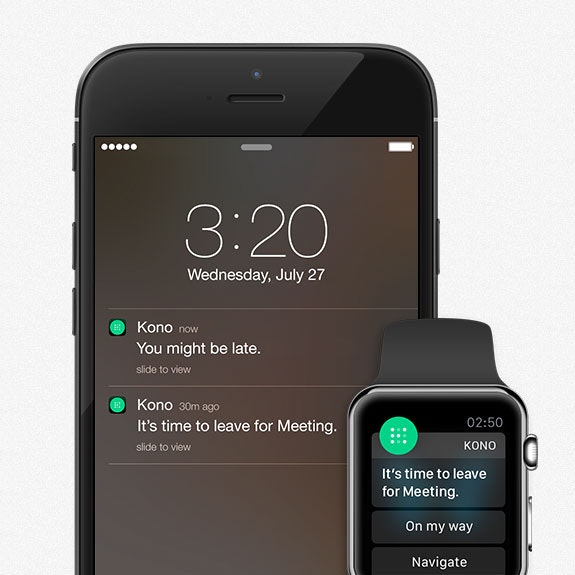 Just tell Kono what you want to do and who you want to invite. Using metrics like user location, traffic, and guest availability, it tells you what the best time and location are for your event. Kono tells you the exact time you should leave based on your previous behavioral patterns and traffic conditions.