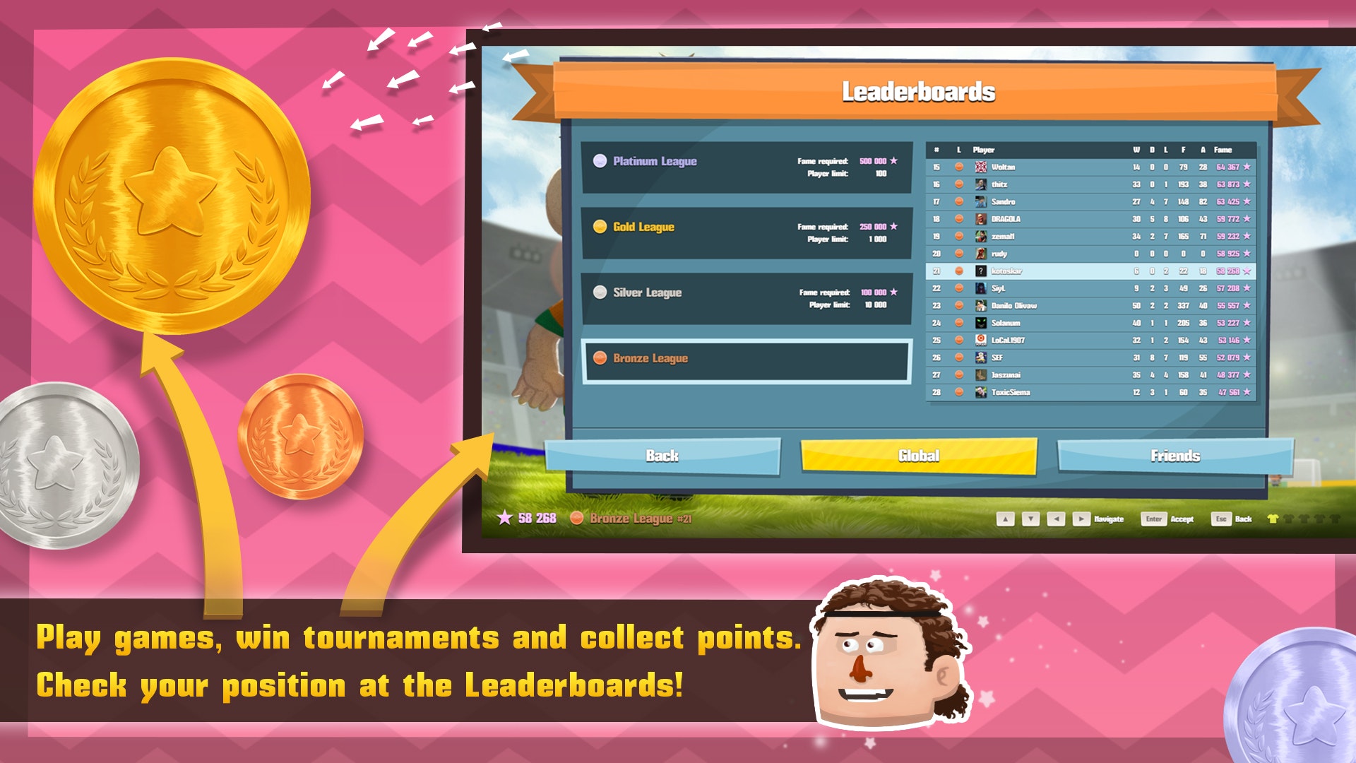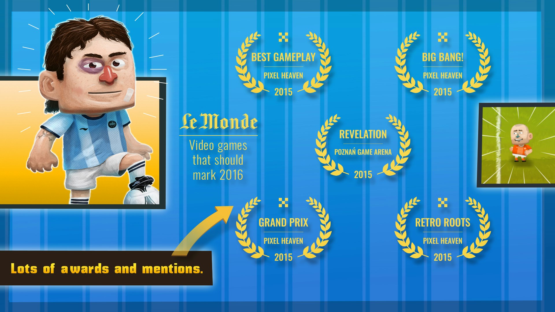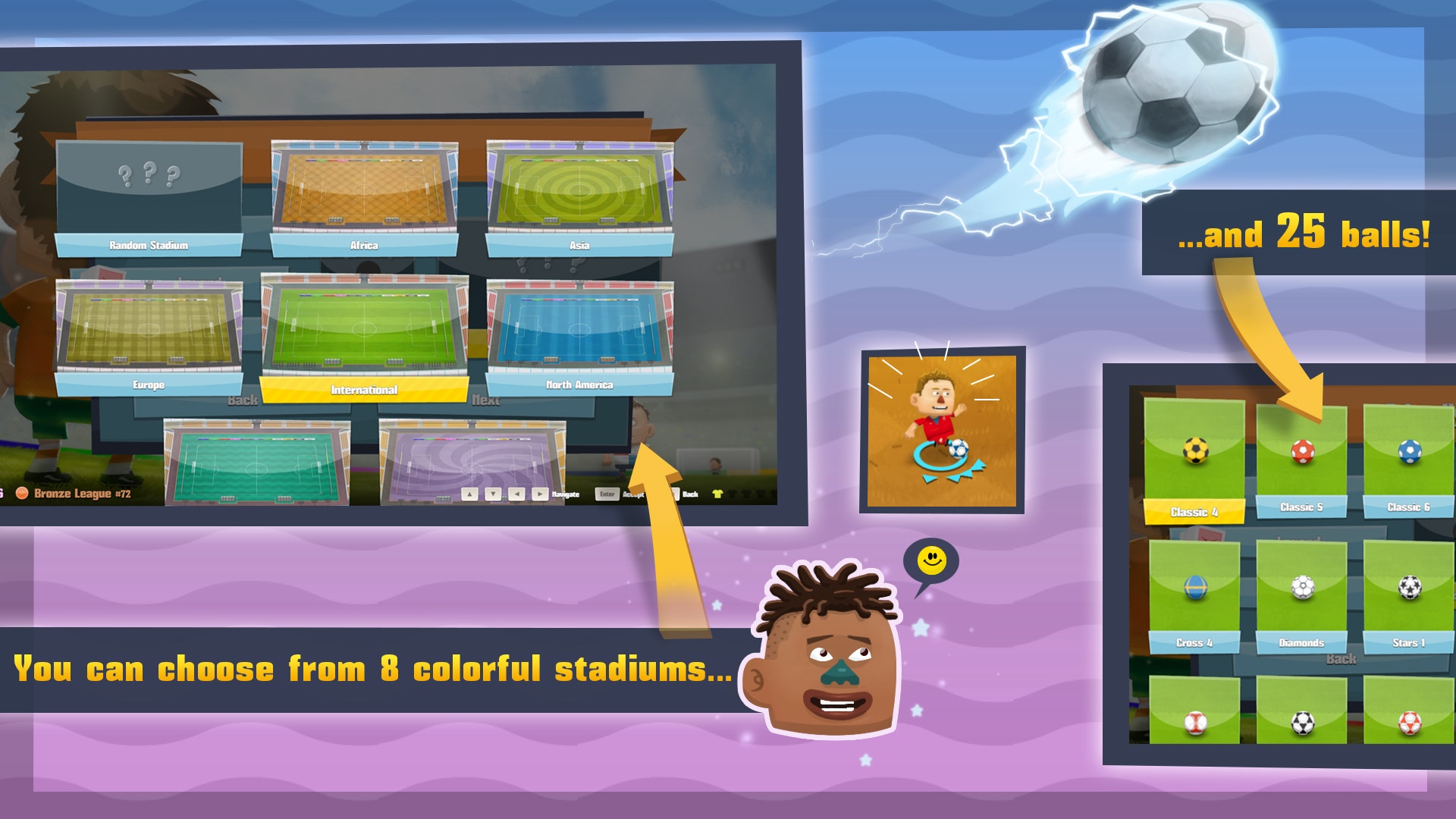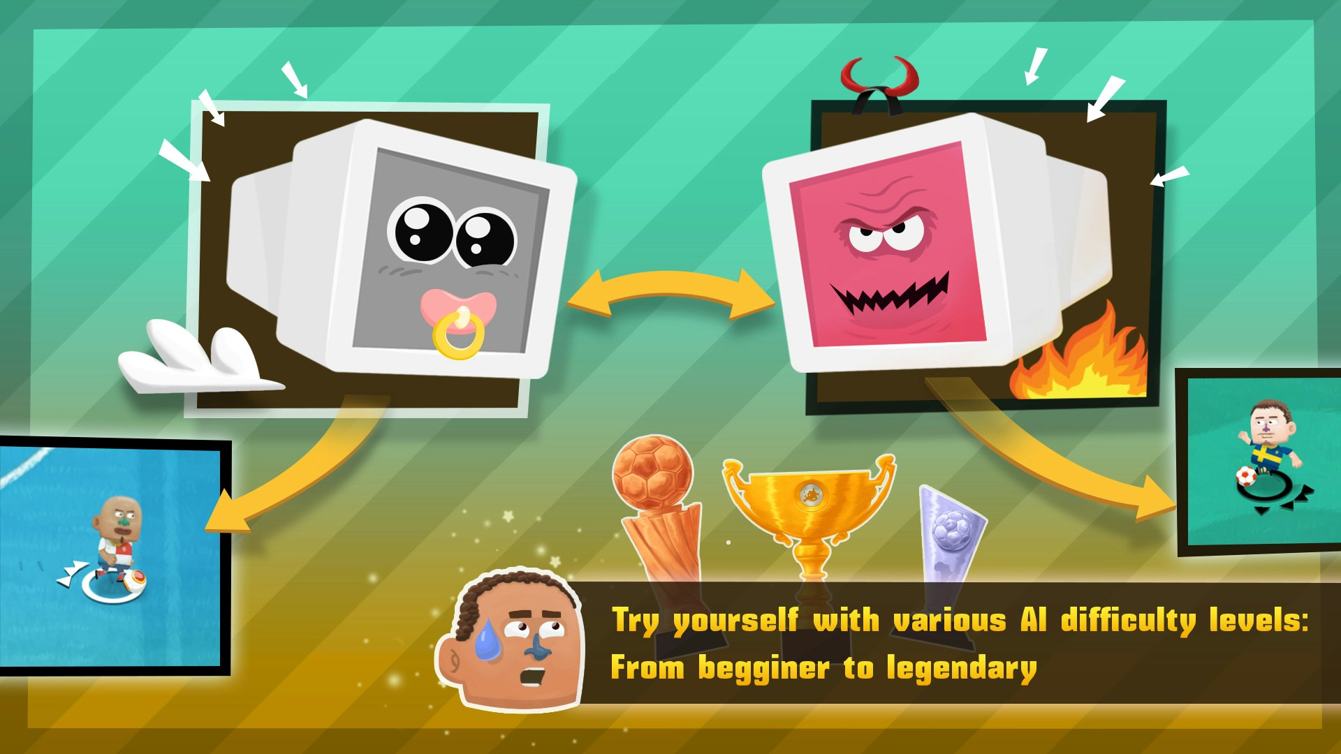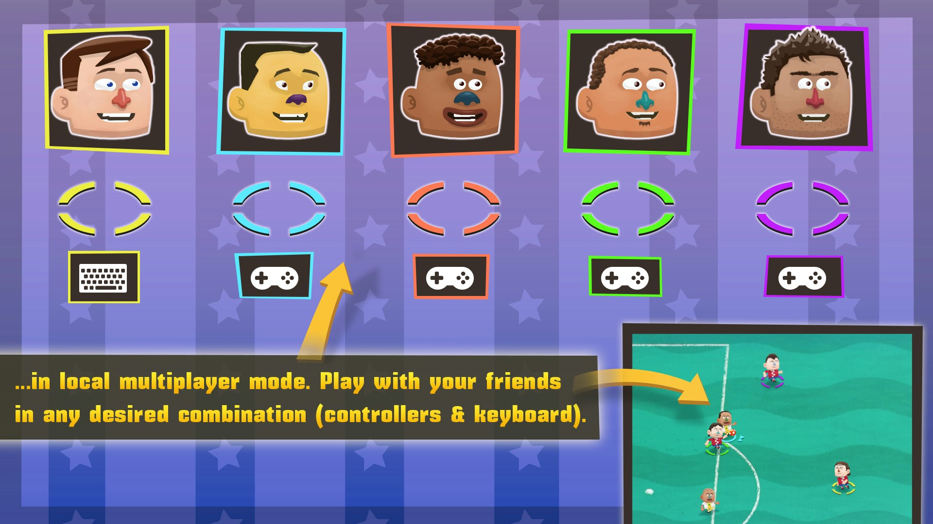 Arcade 2D soccer with local multiplayer.