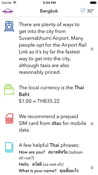 What we really like about Landed is that it's an app that just does one thing really well. It doesn't make you think. You install once, have it on your device and only use it when you need it. You don't need to set it up, you don't need to put in travel plans, you don't need an account. You start the app when you arrive and you get what you need.