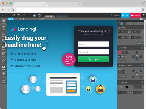 Create a landing page without anyone’s help! Using an easy ‘drag & drop’ editor create responsive landing pages without any help from a technical team.Pick from more than 100 fully customizable templates.