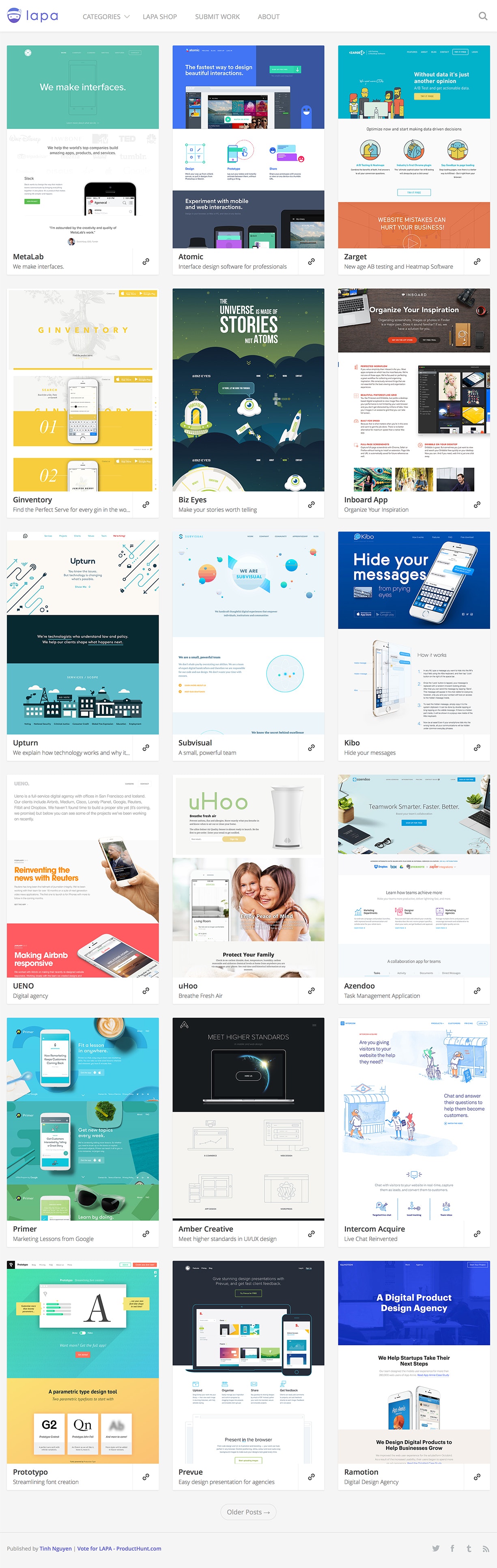 Thanks for the mention @thisisjorik. @konradcaban, Very nice work on lapa.ninja - you've pulled in some awesome examples, and I dig the implementation. Nicely done!