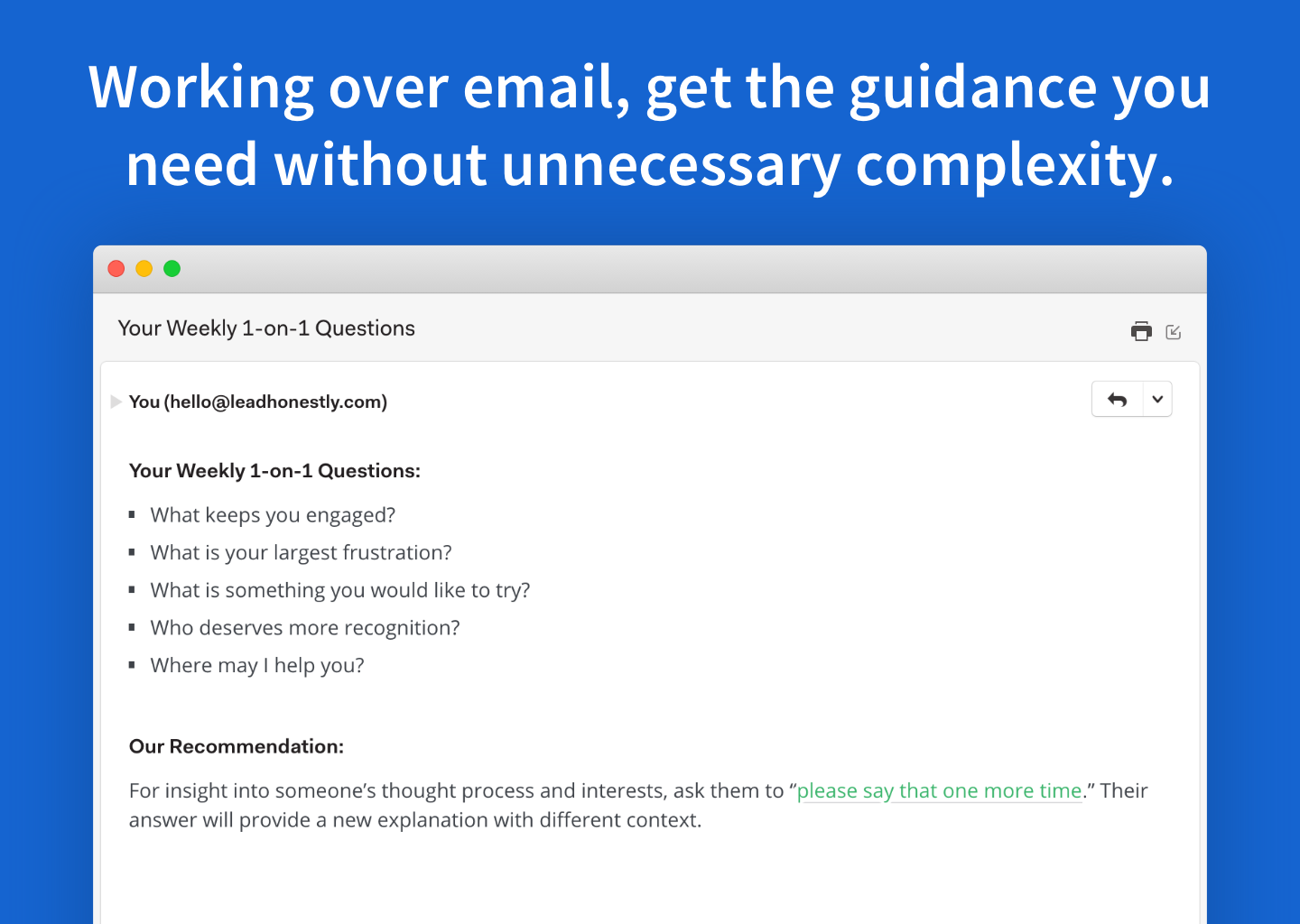 This product is a gold mine. The questions end up being extremely helpful reminders week-to-week (and frankly, solid coaching). Highly recommended.