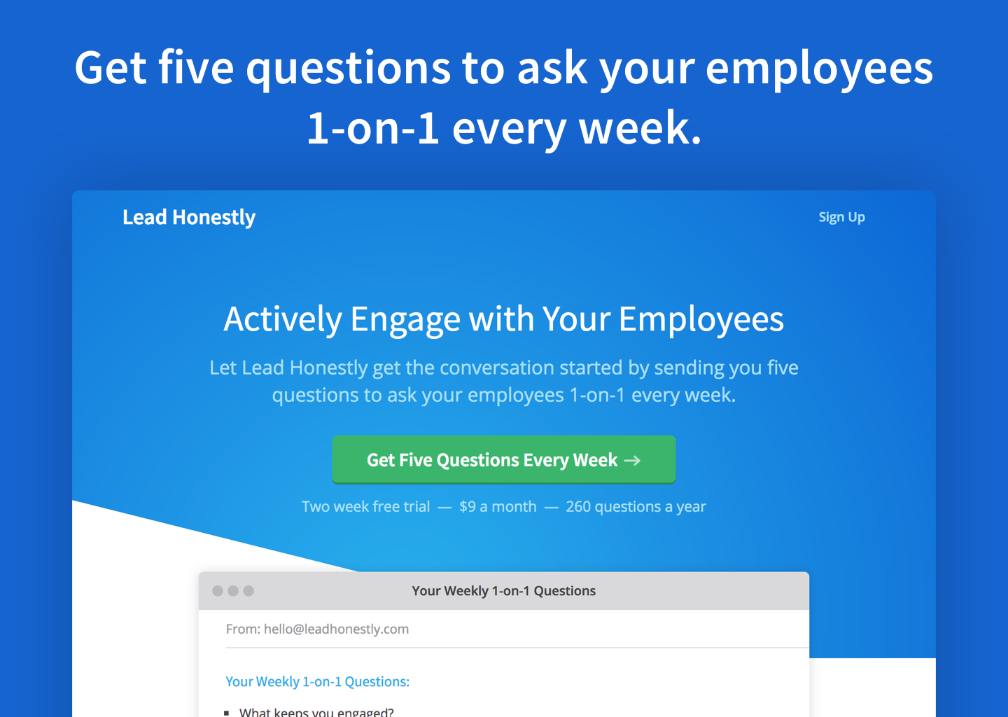 We're excited to launch Lead Honestly today, and are looking forward to your feedback. Please feel free to leave any feedback here, and if you're interested, checkout out our introduction story at https://medium.com/lead-honestly....