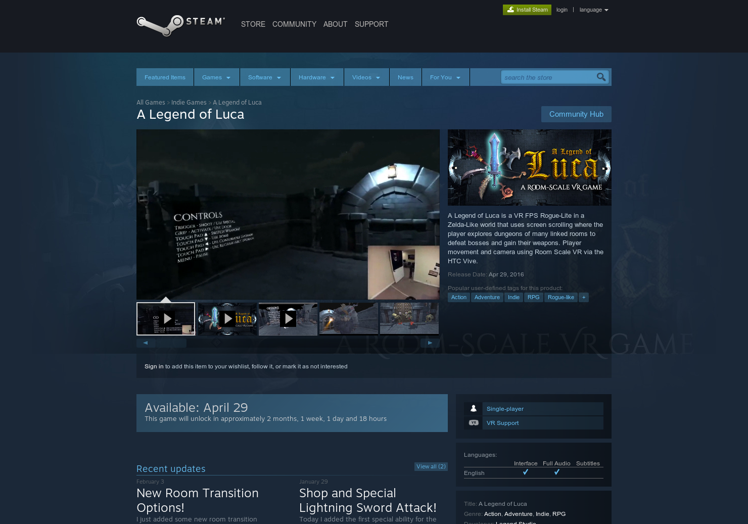 A Legend of Luca is a VR FPS Roguelike in a Zelda-Like world