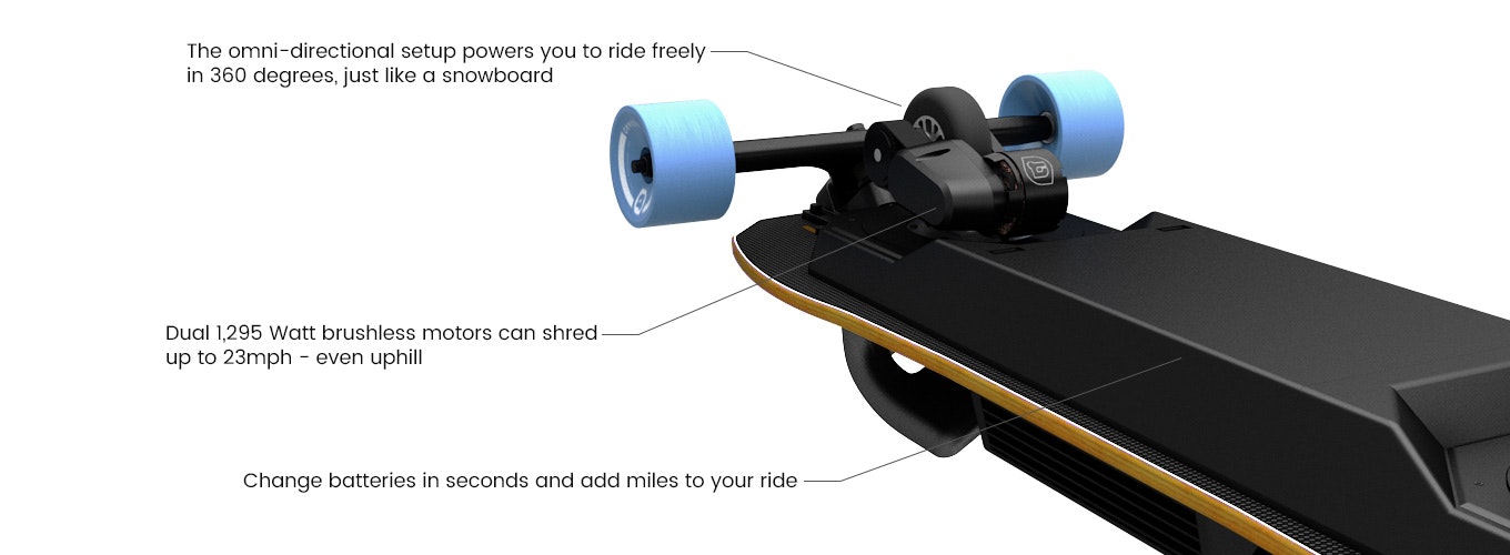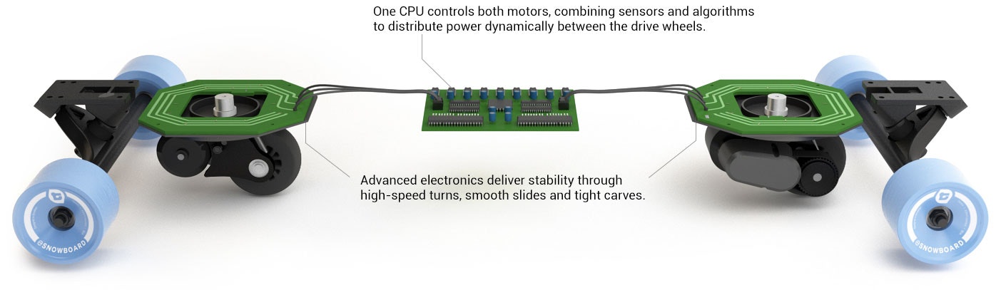 Holy cow this thing looks fun. I love my E-Go but I also love snowboarding. This additional wheel setup under the deck somehow makes this board act more like a snow board. Would love to hear about the process of creating this. My guess is there were more than a few prototypes that got scrapped.