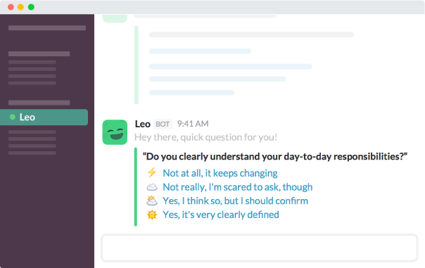 Thanks for checking out Leo, the Slack app to help keep your team happy built by Officevibe :)