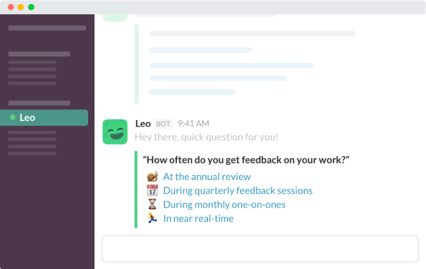I love using Slack in the office and the concept of using Leo would work amazing for feedback from the team.