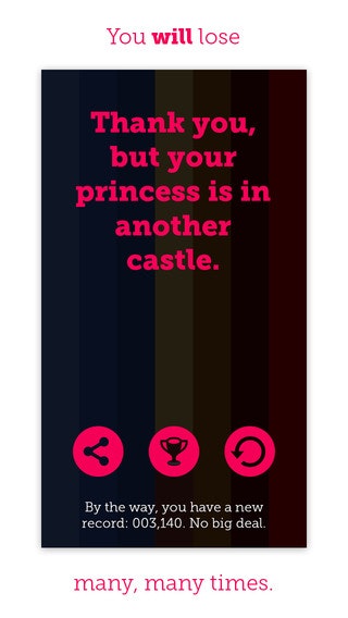 Caught a link to this one on Dribbble while browsing app icons. Always enjoy these simple, yet highly difficult twitchy puzzle games. Love the fact that the colors get harder to distinguish as you go up in levels (I admit I've only got to the 2nd level) making it harder to stay in the right lane while avoiding the obstacles.