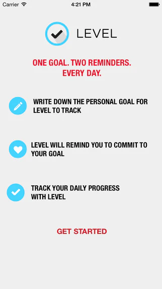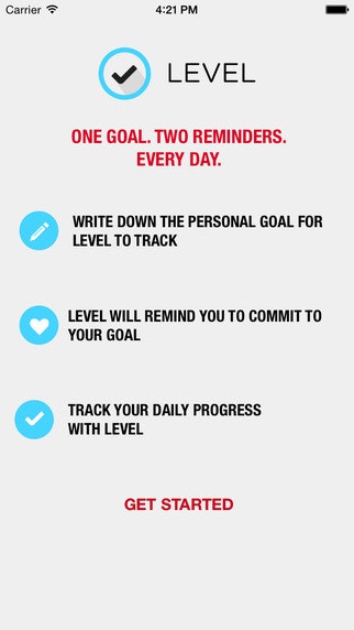 Level is a quiet little app that was built to as a way to focus on those long-term goals that we all have for creating new habits. We built the app around three basic ideas: 1) building habits and achieving goals is deeply personal; 2) simple reminders help; and 3) consistency is the only way to build a habit.