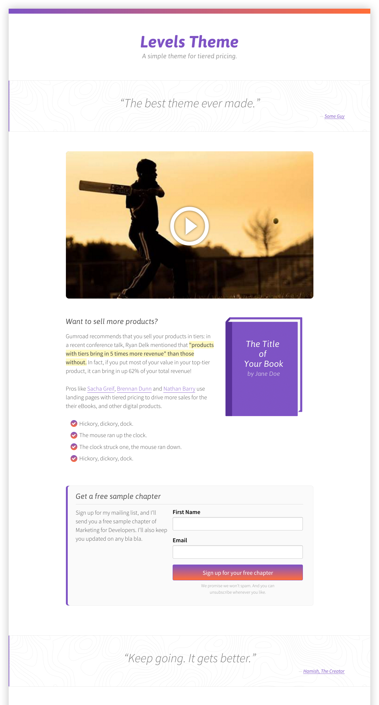 Hamish here, I'm the primary developer for Levels — @mijustin and I created this theme to help all you awesome creators get your products out there.