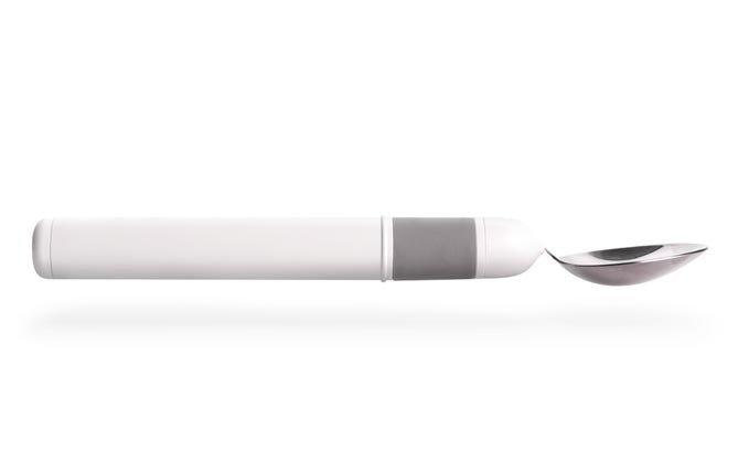 Auto-leveling utensil for people w limited hand/arm mobility