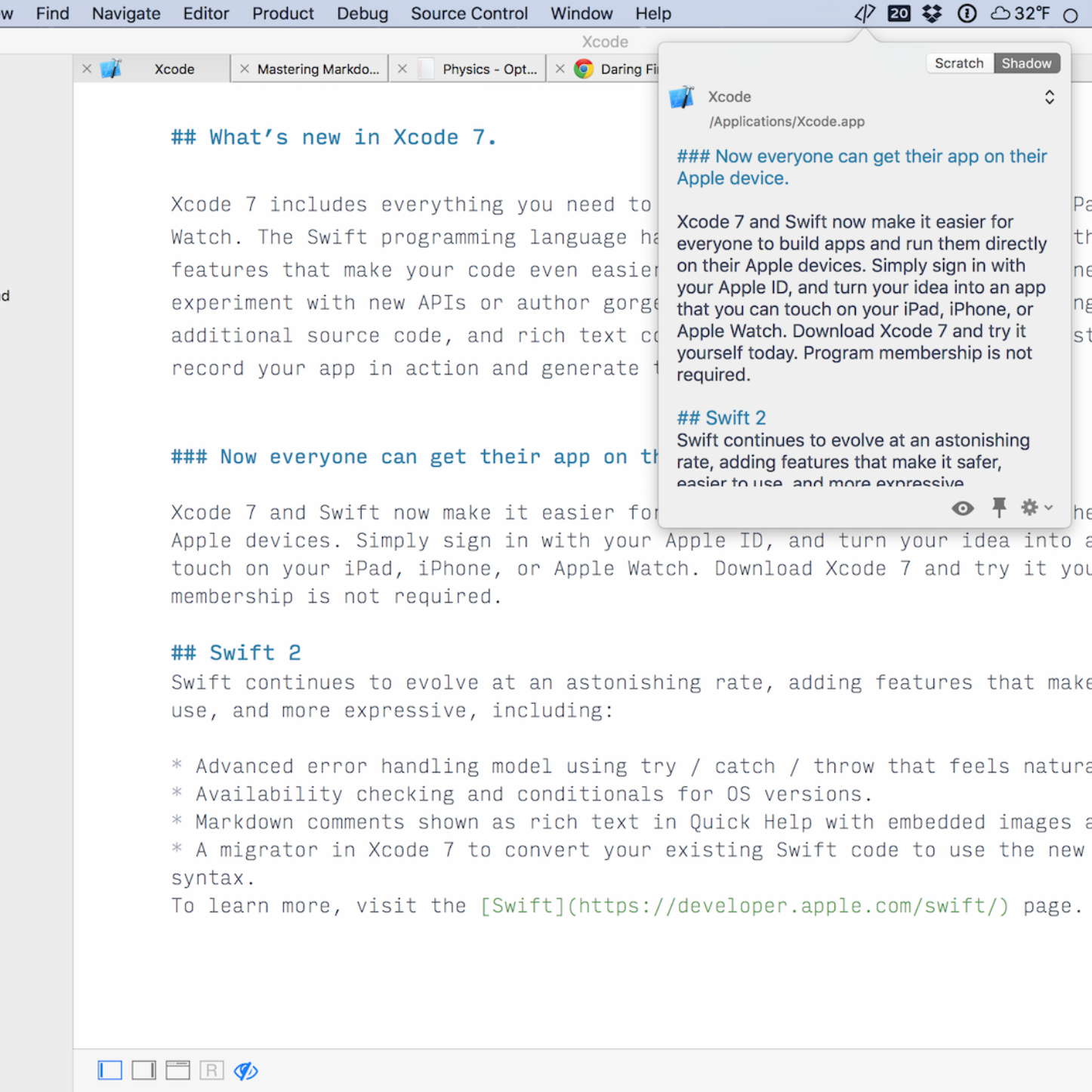 Trying it now. I don't need a new Markdown Editor, but I've been looking for a scratchpad Markdown editor that sits on the menu bar for ages...