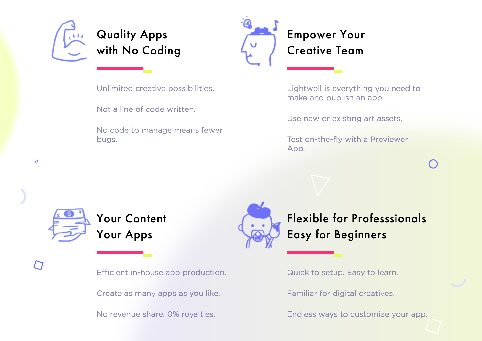 I think the product description should be: "Make mobile games without writing code" rather than "apps"