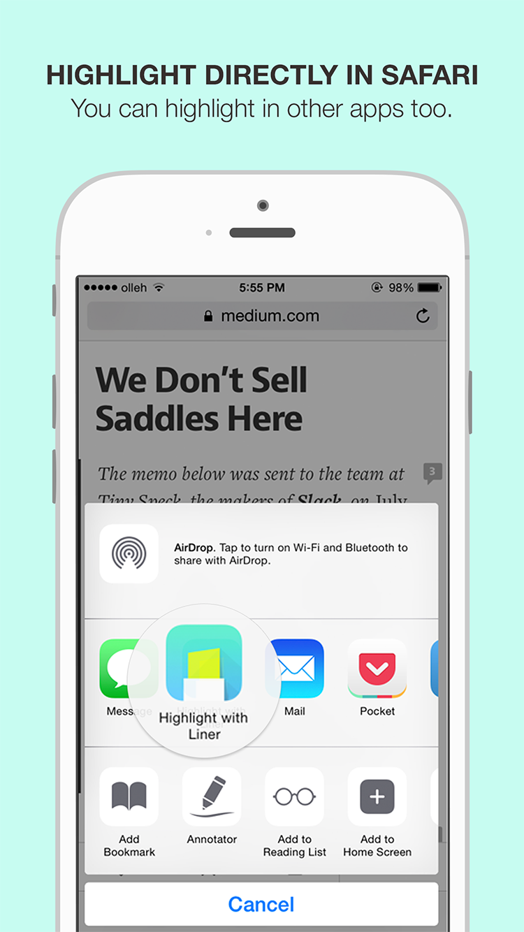 Would *love* to see an integration between Pocket and Liner. I build up my Pocket queue throughout the week (usually around longer reads) then share/take notes from there.