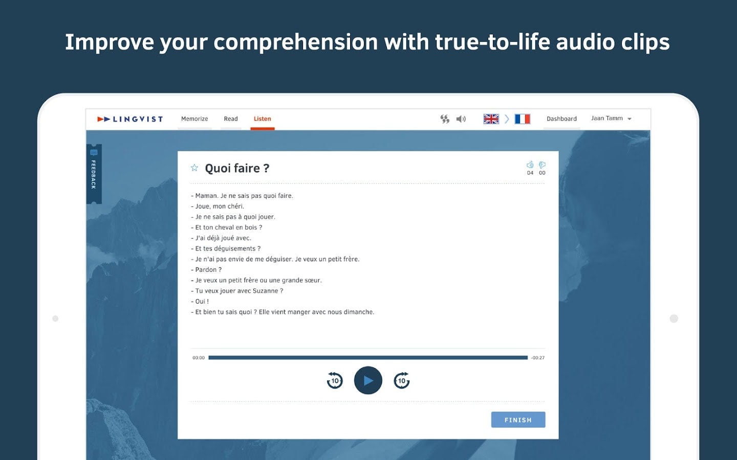 I started Lingvist while I was working on the Higgs team at CERN. I had tried all sorts of ways to learn French - online and offline and everything was too slow. So I designed an adaptive algorithm to help myself learn French. It worked. After 200 hours of study, I went back and took the Estonian school exam in French and passed it. … See more