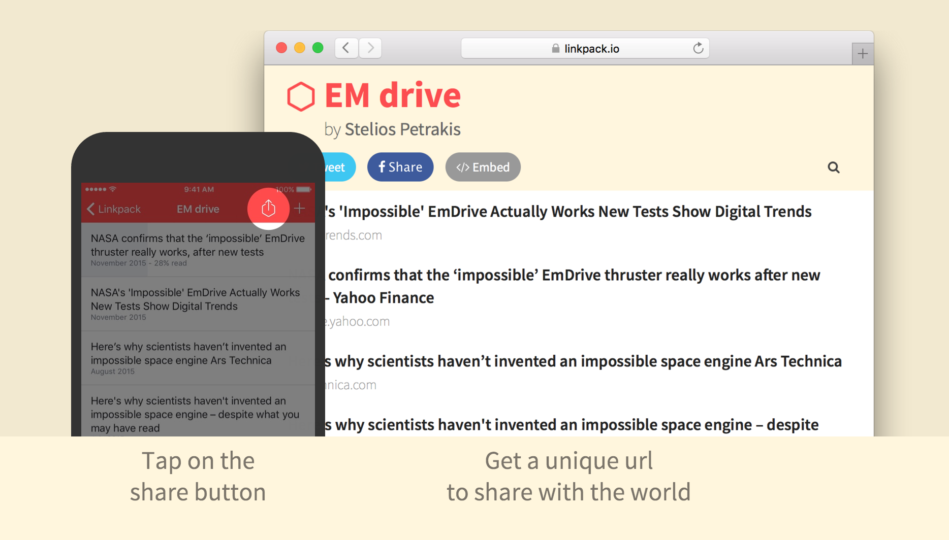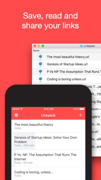 You can view and categorize them the way you want to and you can easily track your reading progress, listen to your saved articles and share folders of links (called Linkpacks) with the world.