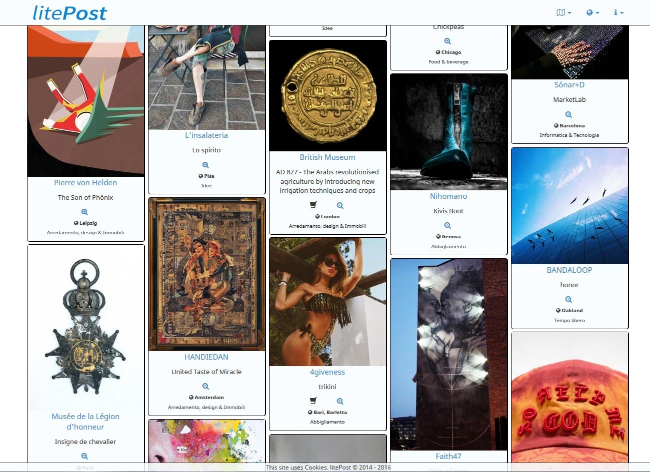 Due to the fact that at the beginning we thought this portal like a "design and fashion" portal, it has category titles wrote in italian, but, when we had changed our mind and begun to think this as somthing more, we kept that language for the reason that we think it doesn't matter the text, in this context, but you have to understand everithing from images, and this is also the reason of why the language of many post is in the one of the country in which it becomes.