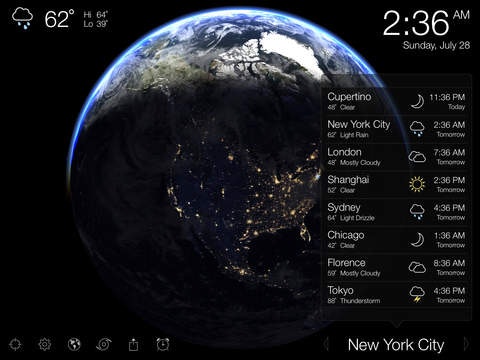 Living Earth is a world clock and weather app with live satellite cloud imagery, an accurate rendition of our planet, and dynamic notifications of tropical storms. It supports over 3+ million cities (over the 300 or so built in cities on iOS and Apple Watch) an… See more