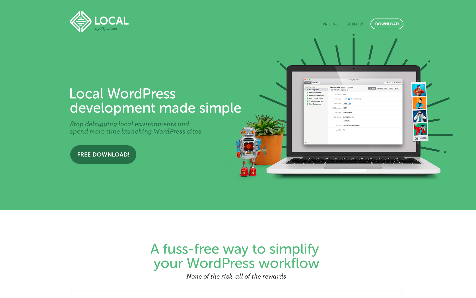 Hey everyone! I'm the co-founder & CEO of Flywheel, the makers of Local by Flywheel. We're pumped to be launching a simple, beautiful solution for building WordPress sites on your local machine. Let me know if you have any questions!