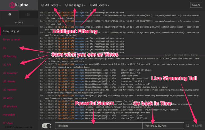 Hey everyone. I’m a co-founder of LogDNA. We were in YCombinator's W15 batch working on a eCommerce marketing platform (PushMarket), only to realize we built a powerful logging system many of our friends wanted.