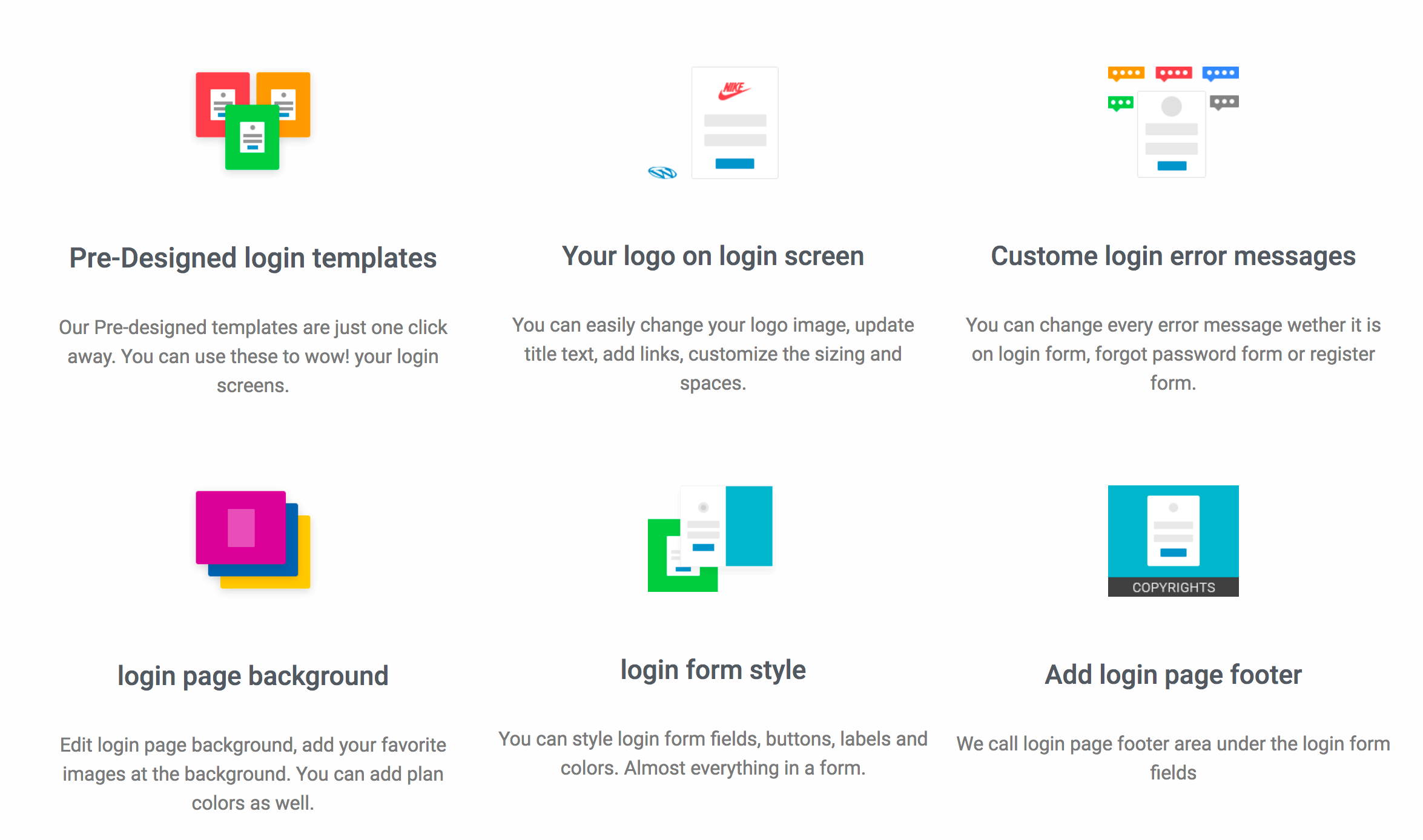 LoginPress is an innovative plugin to customize and secure your boring login pages in WordPress. It has 20+ ReadyMade designs of the login page for startups, businesses, bloggers and photographers.