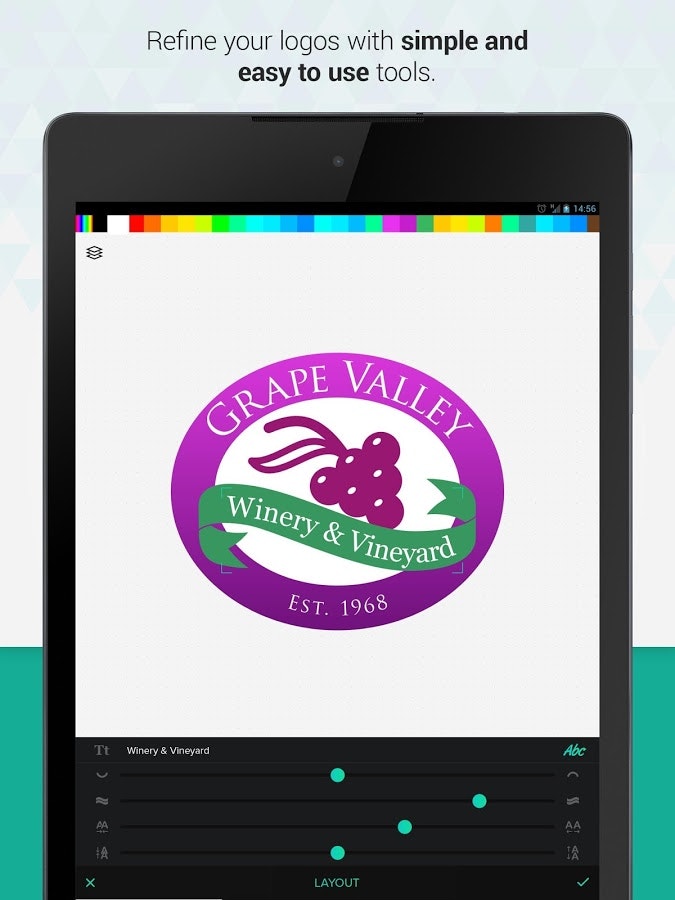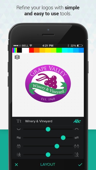 - Advanced text editing tools that let's you create beautiful typography for the logo