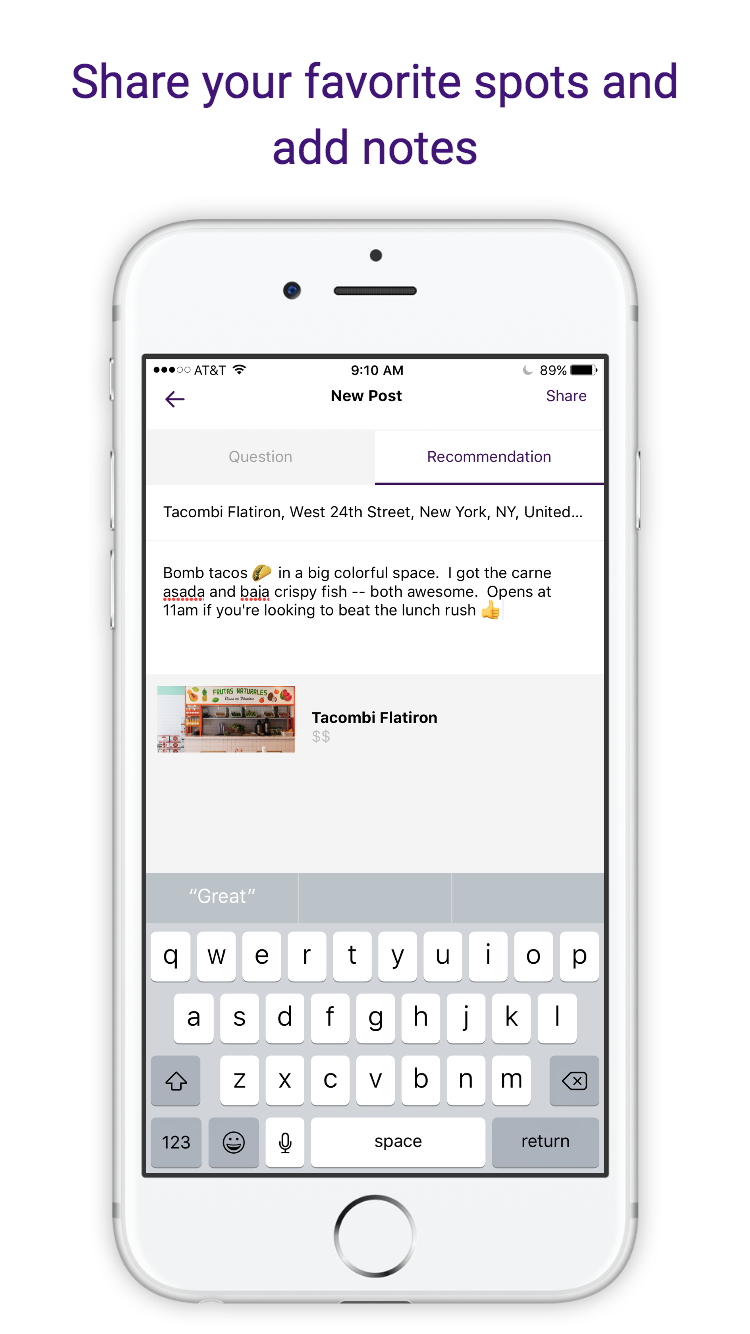 Our goal is to build a location-based network for people to find and share recommendations, whether it's a new taco spot that opened up on your street or an upcomin… See more