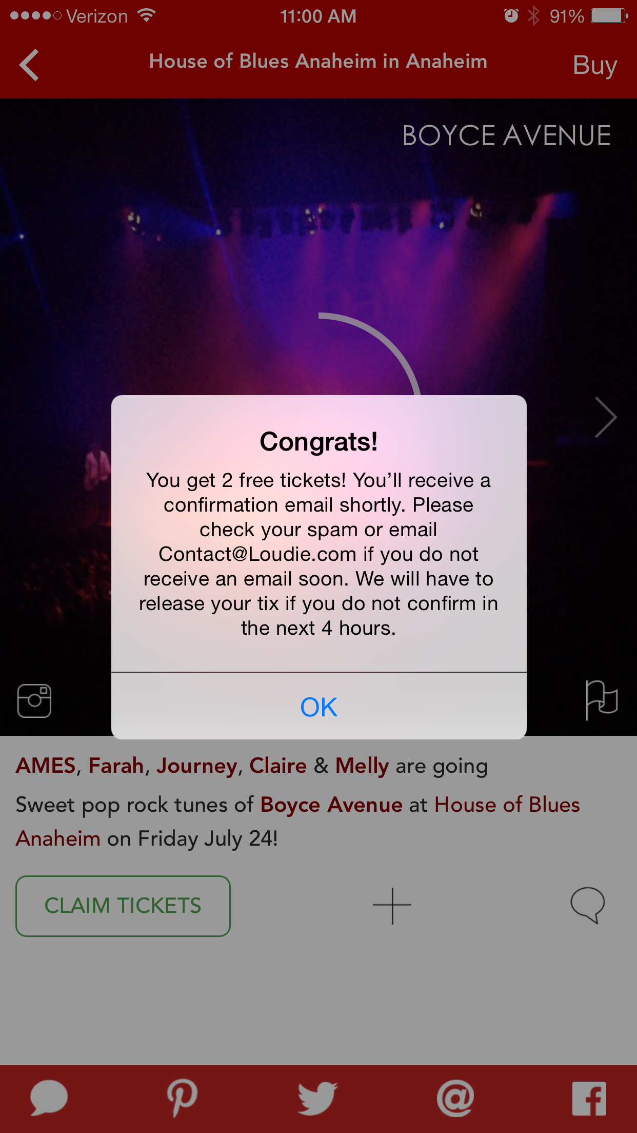 1. Giving our users free tickets to select concerts in their area!