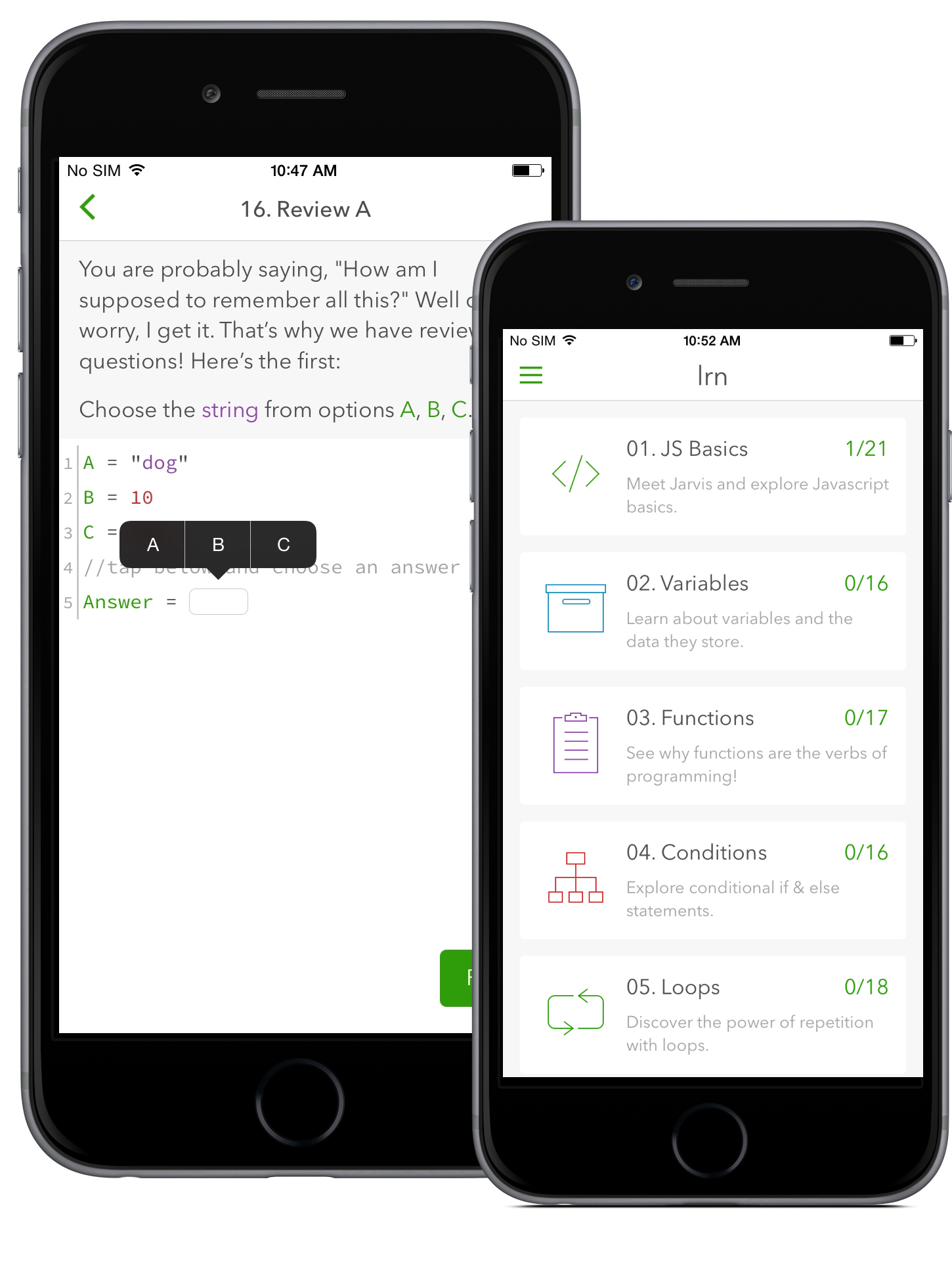 Lrn is a mobile app that teaches you to code through interactive mini-quizzes. You only need internet to download then you can use the app without a connection (even on the NYC subway!). We want to make the most immersive mobile coding experience possible.