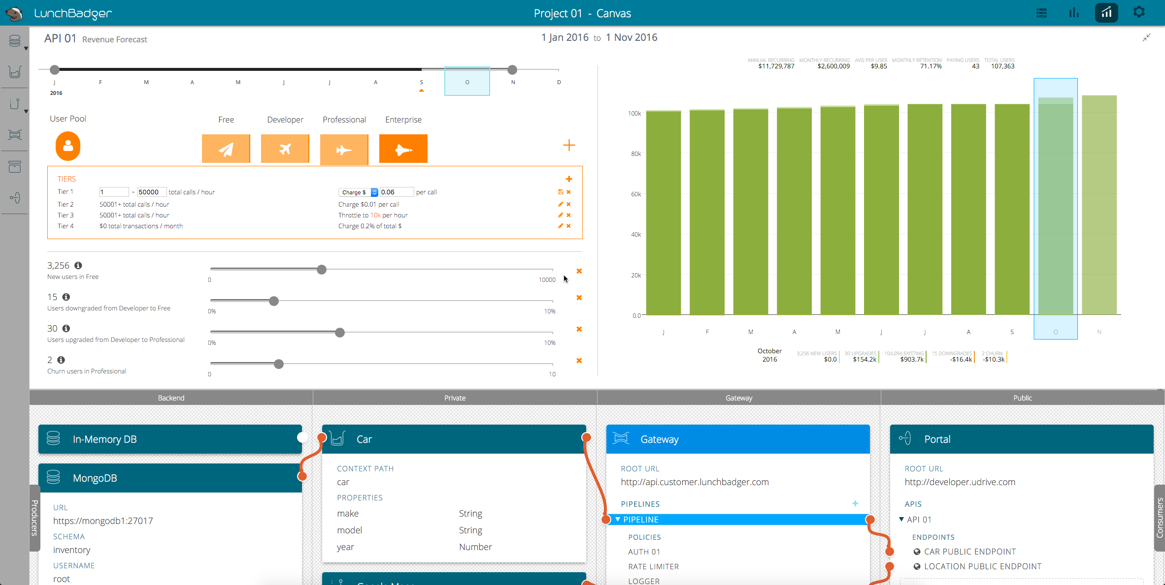 Get to your developer.yourcompany.com from 0-60 as quickly as possible. Equate APIs as a strategic asset for your company and use this to tie us back to top line revenue and customer growth and optimized cost of operations. Forecast and predict your revenue using the heart of your business functionality with data and insights to justify the right pricing with the right plans.