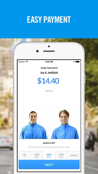 "Luxe parks for you, so you don’t have to. For $5 an hour - and maximum of $15 per day - you can own a parking spot in your pocket. Luxe is a new service in San Francisco that sends valets to you, wherever you need to park. It’s fast, stress-free, reliable, and affordable."
