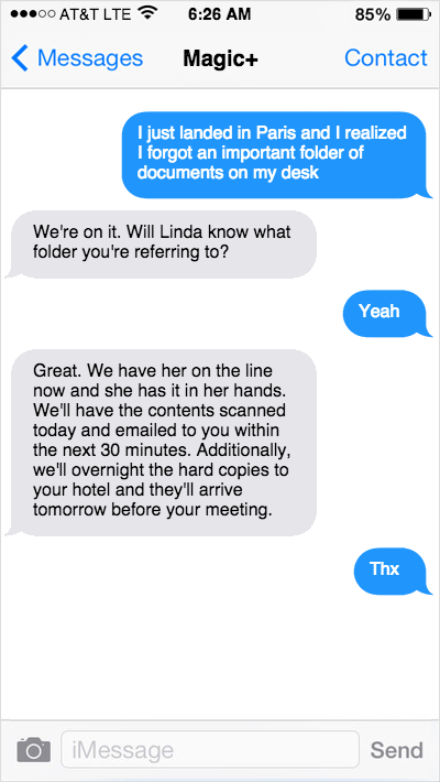 "The original version of Magic is still available and operates on a pay-per request model. It works best for one-off purchases and deliveries. Magic+ gives you a dedicated team of specially trained magicians and advanced software that will get to know you and your specific needs to integrate fully with your life.”