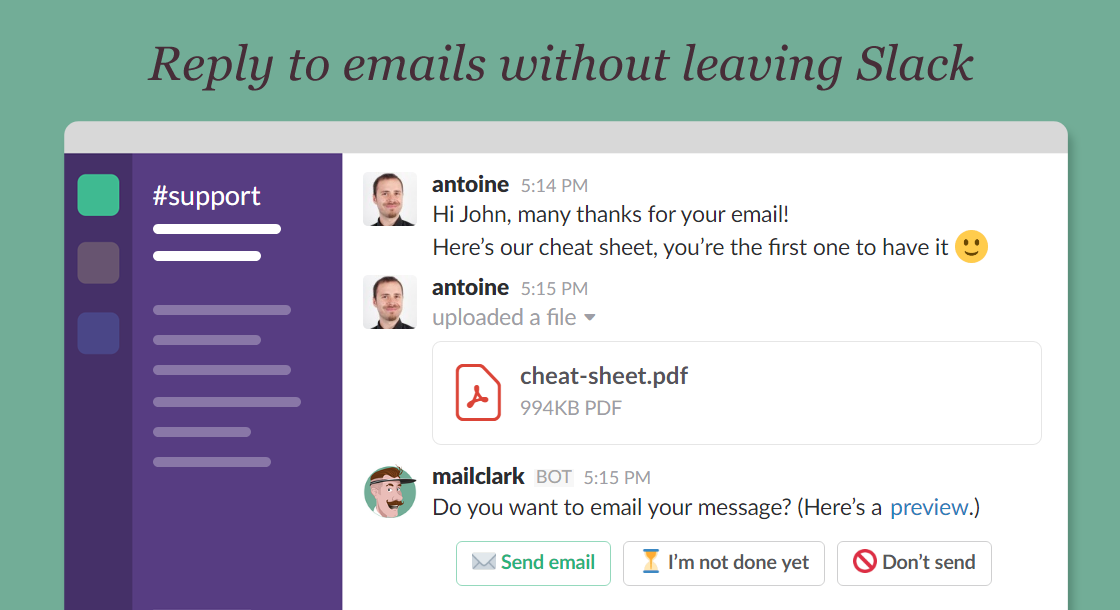 MailClark is one of my favorite and useful Slack integration. Well done guys :)