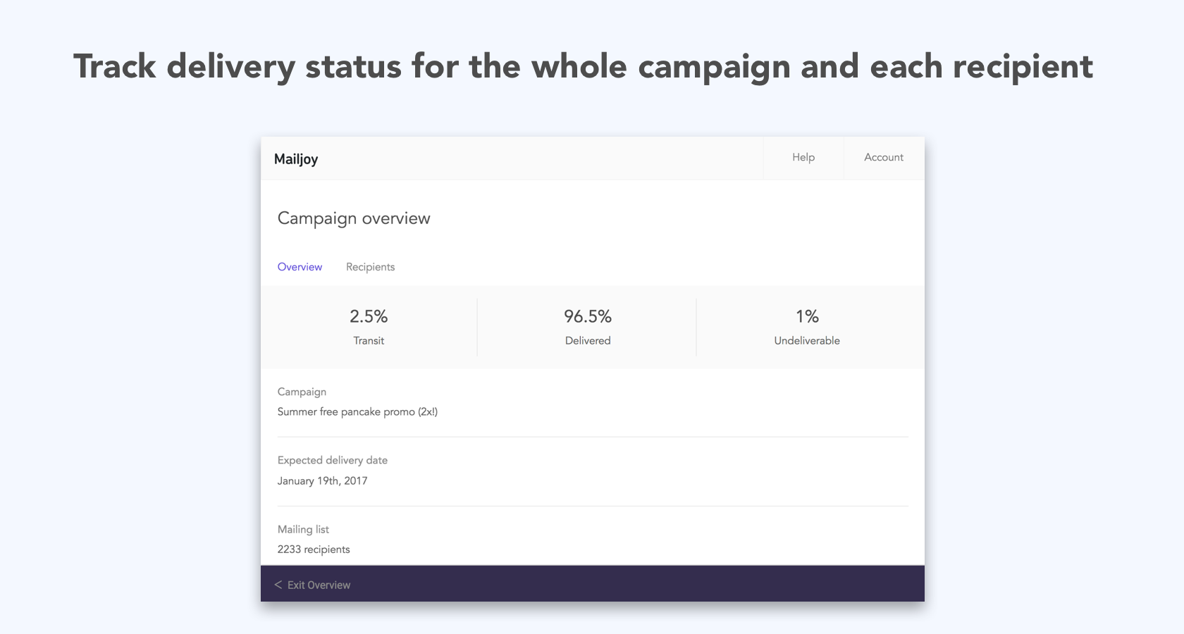 Thanks for hunting us Garry, and hello Product Hunt! We're building Mailjoy as a self-service tool that makes sending a physical mail campaign as easy as an email campaign. Today, we do that with postcards for acquisition and reengagement campaigns around promoting sales, trial activations, event invites, causes, thank you notes, or any other creative ideas … See more