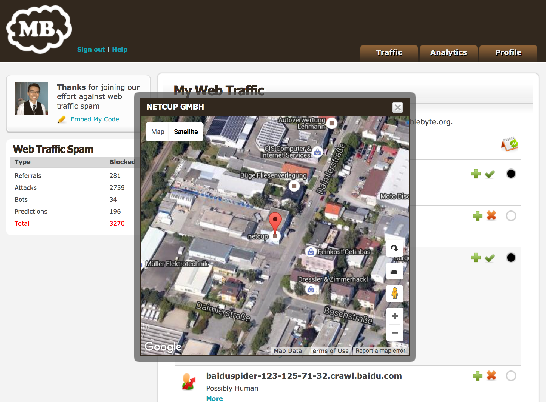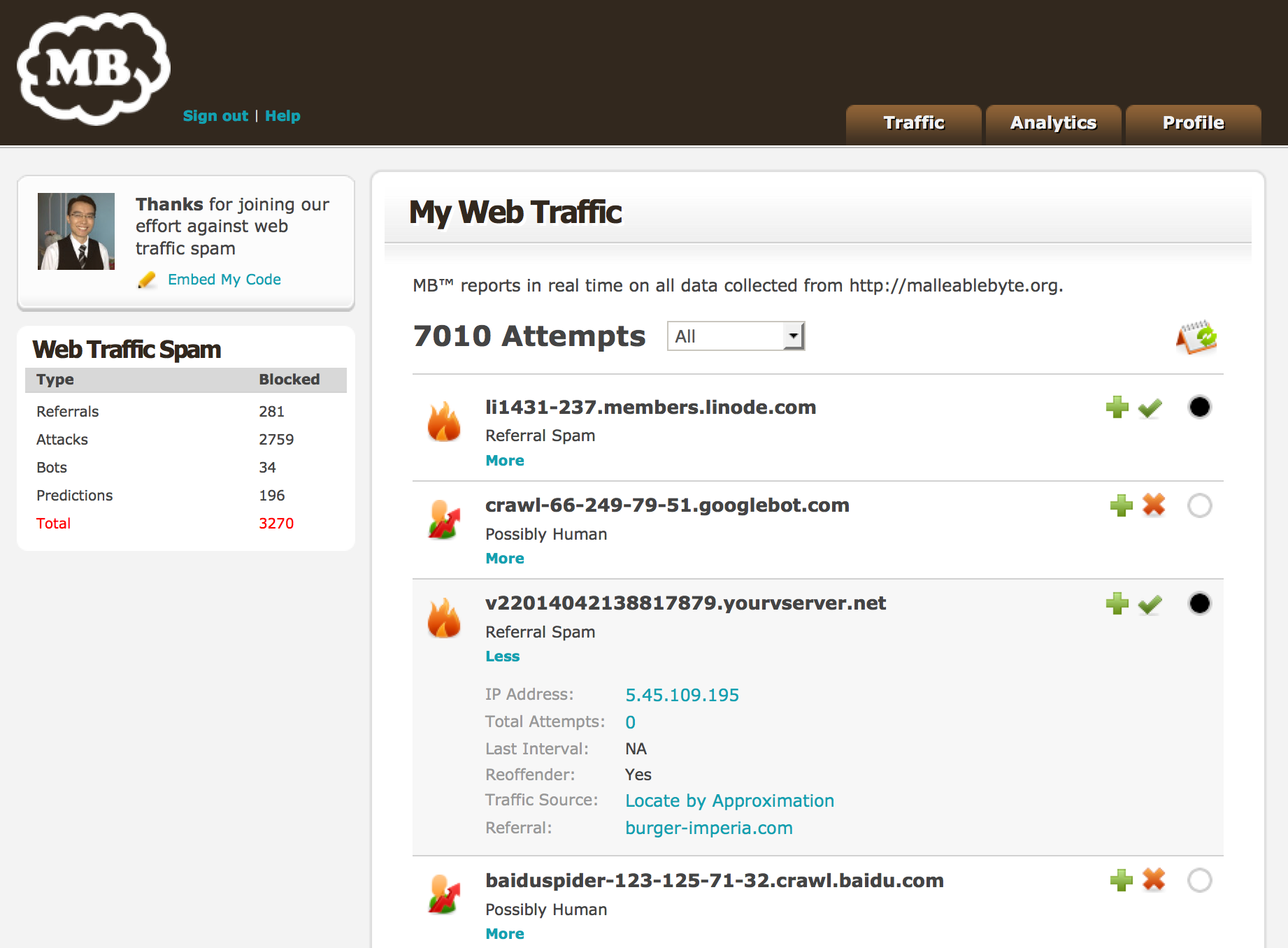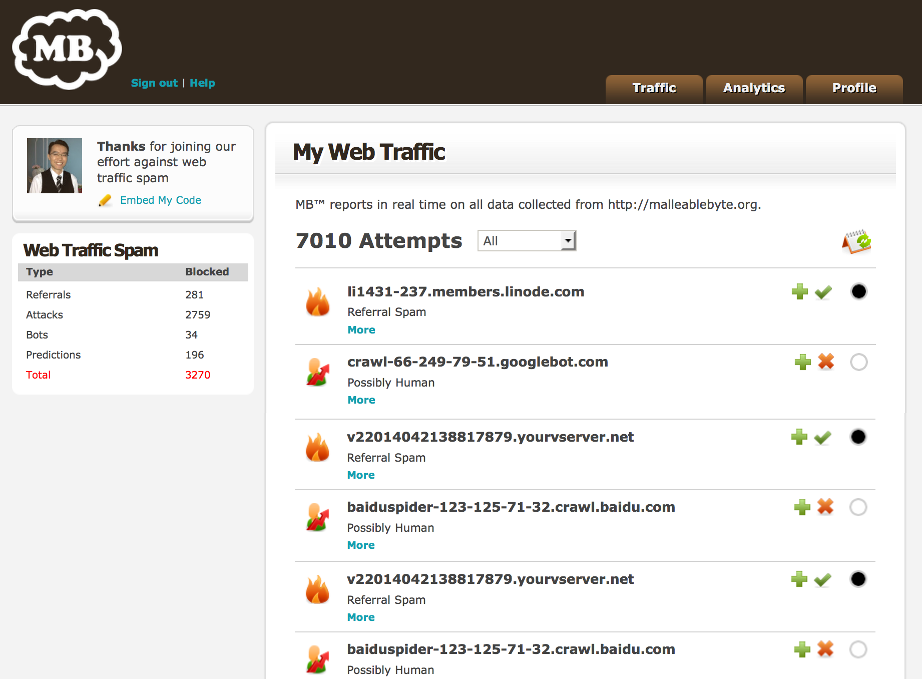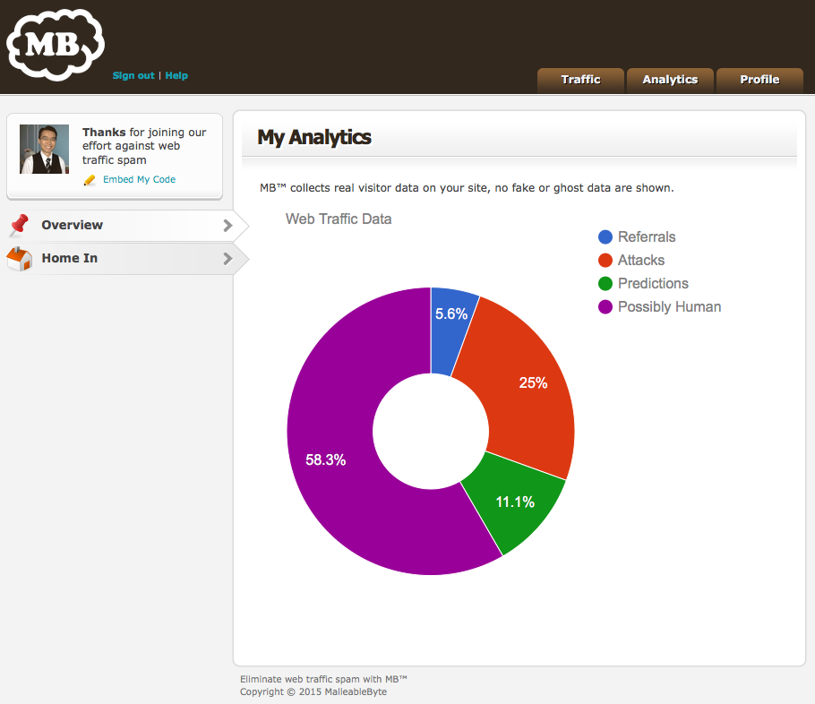 MB™ is currently on private Beta trials with selected parties only. However, we will provide a free account for anyone interested in fighting web traffic spam provided they engage with us on Product Hunt.