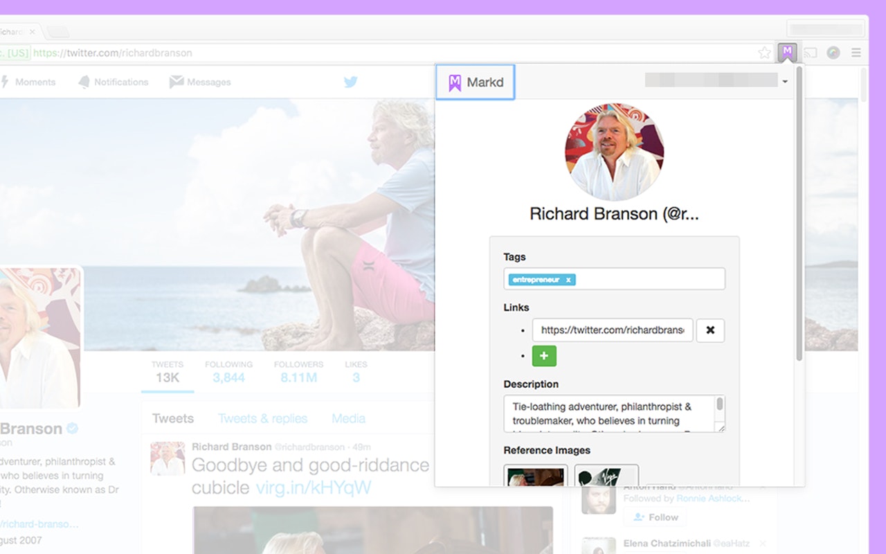 Markd is a button on the browser to quickly bookmark and organise interesting people you find online.