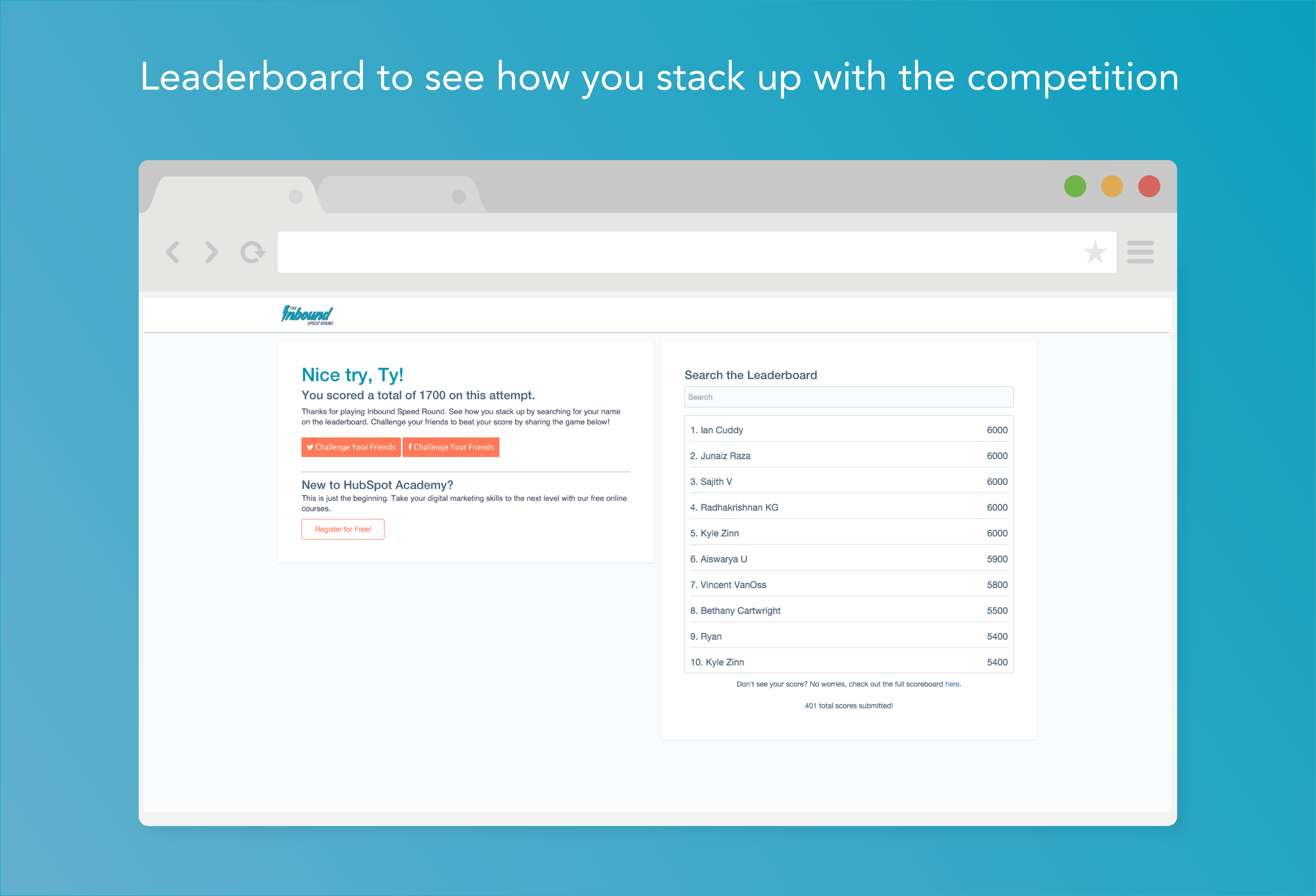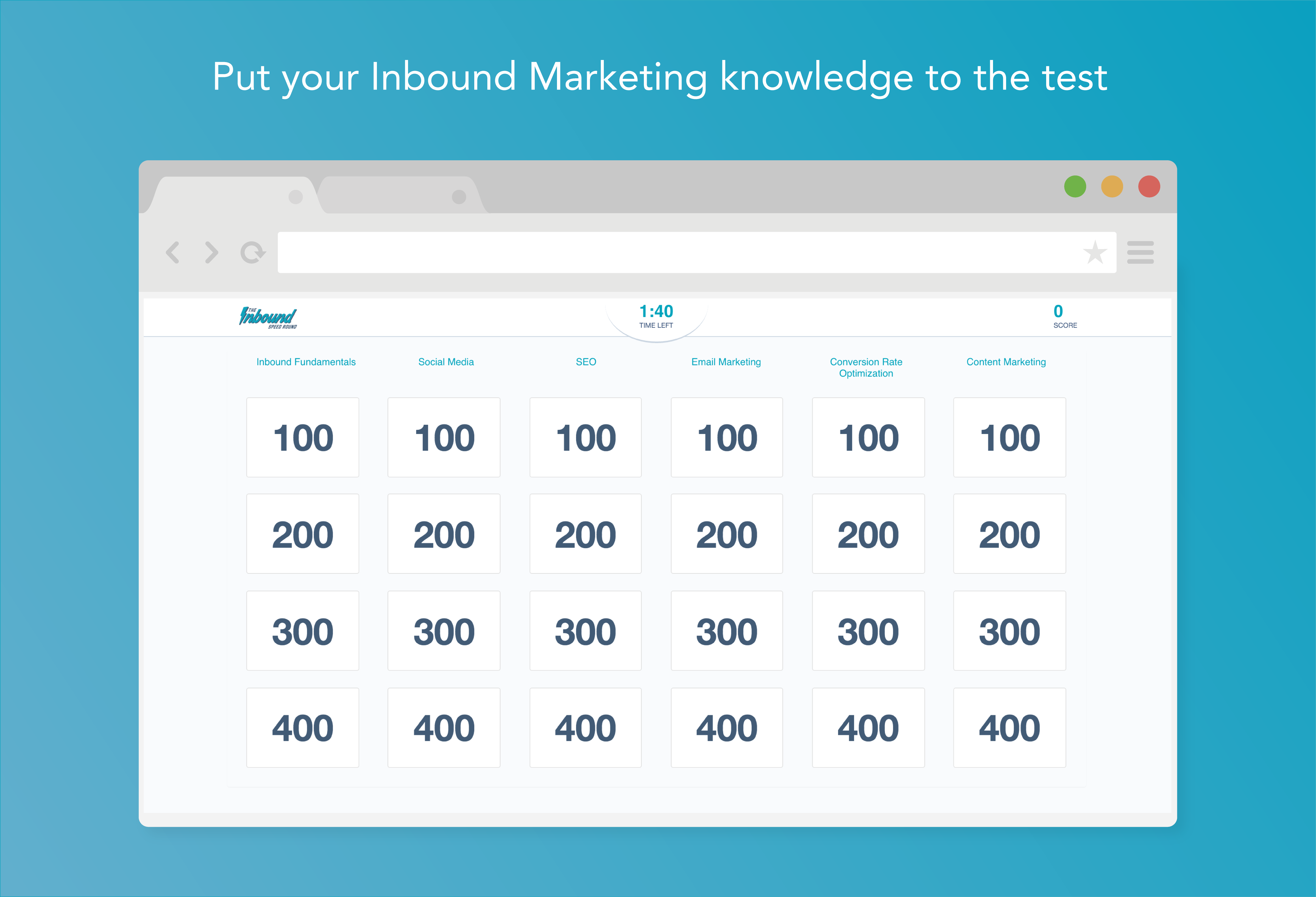 My name is Julien and I work for HubSpot’s training division, HubSpot Academy. We’re always looking for ways to make learning marketing and sales more engaging and fun, so along with the help of our designer Ty, we created this jeopardy-style quiz game Inbound Speed Round.